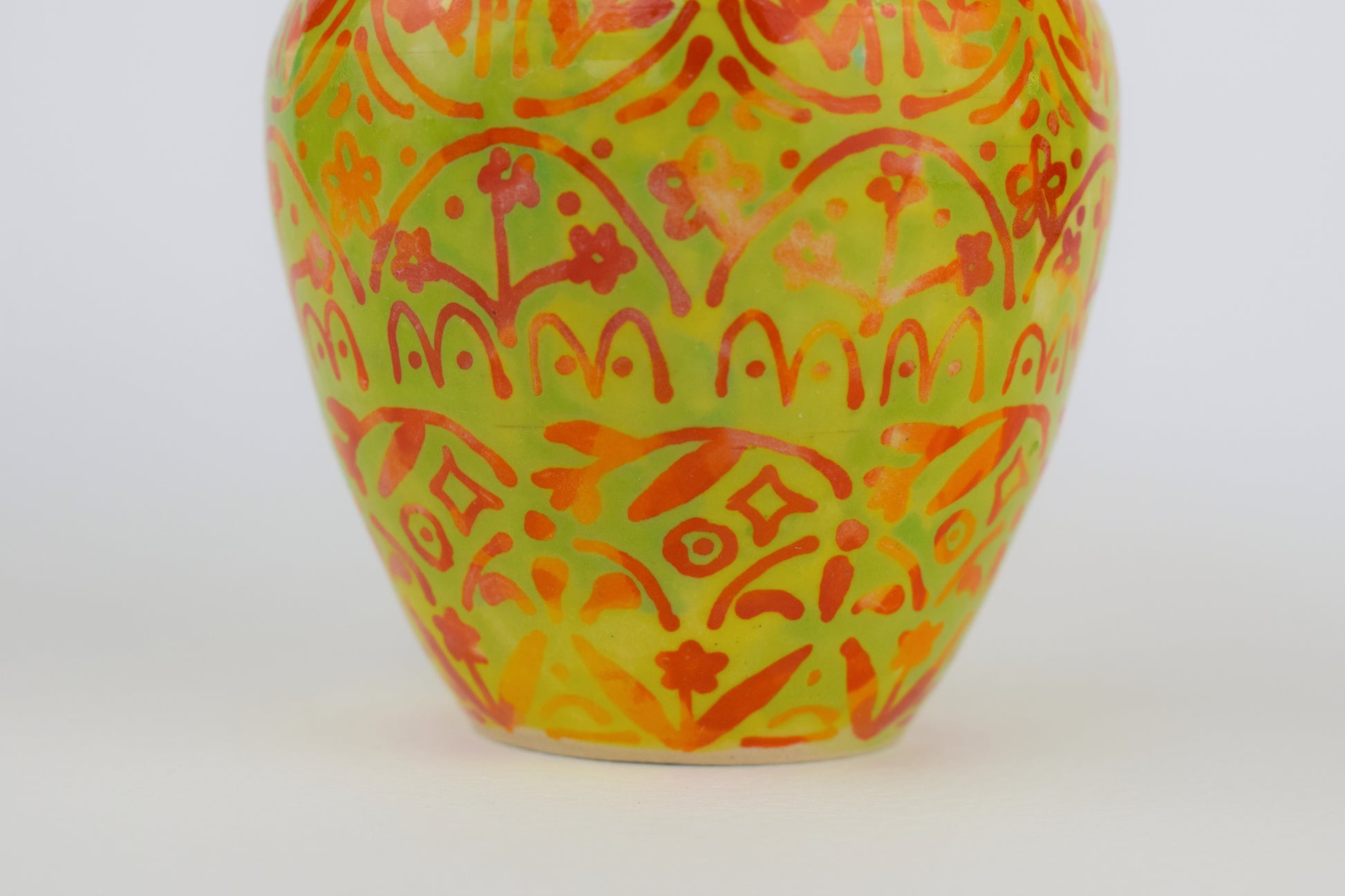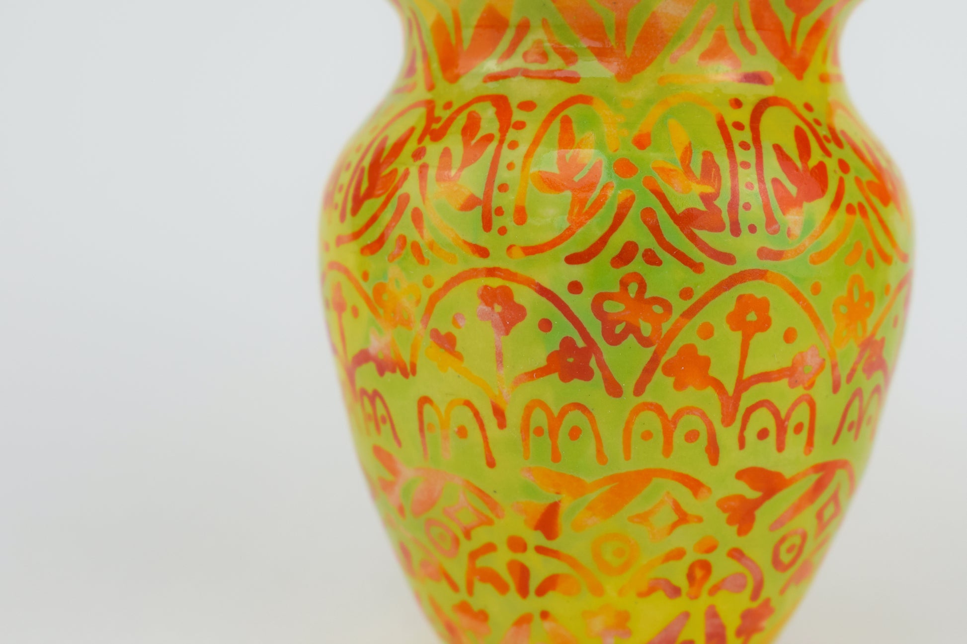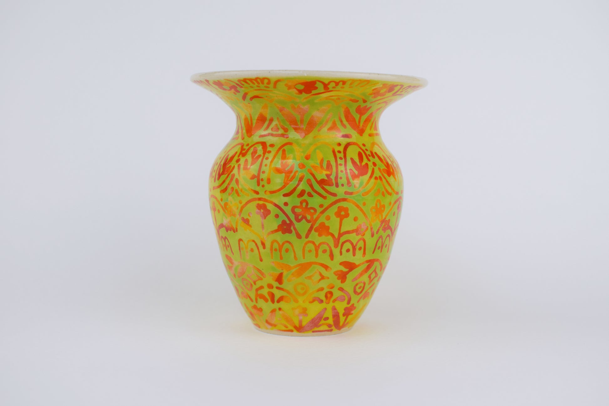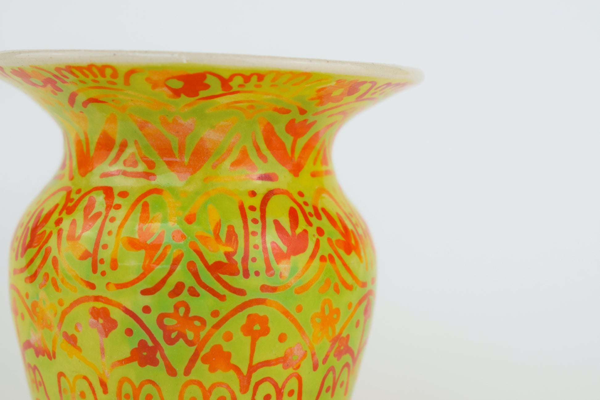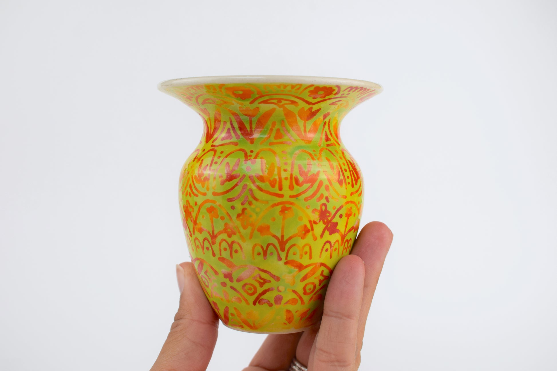 The inside is glazed with a transparent gloss, making the vase fully sealed and suitable for fresh or dried stems — or simply to bring a bright and balanced touch of colour to your home.