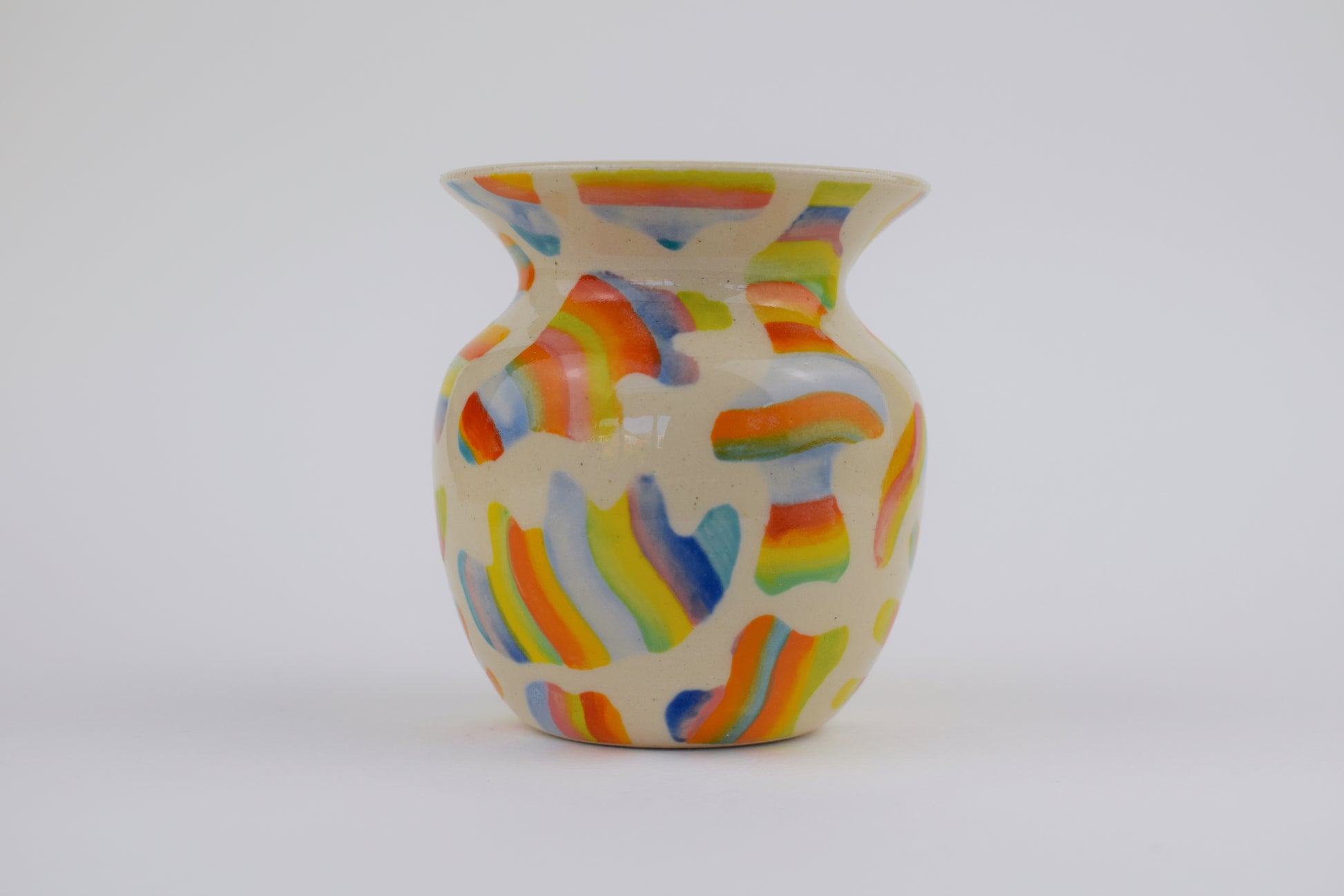 The mini vase is a highly decorative stoneware ceramic. Hand-thrown on the potters wheel and fired to over 1000 degrees, each ceramic is made in my cosy home studio! The vase is a one of a kind, with the unique pattern created through hand-painting layers of colourful glazes. Glazed on the inside with a transparent glossy glaze, each vase is sealed!