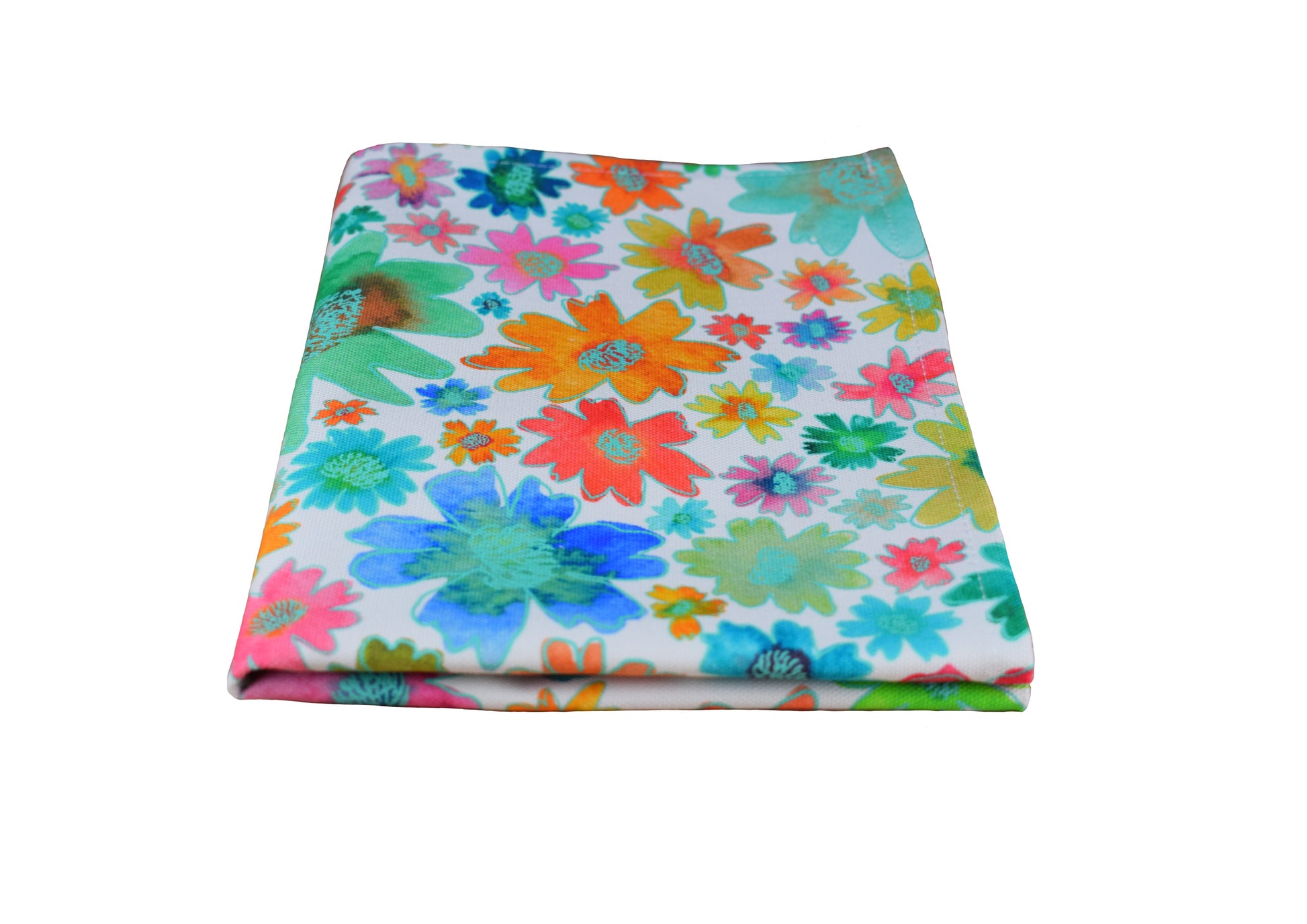 Inspired by patterns and forms found in the natural world, the abstract tea towel will bring bold patterns and bright colours to your kitchen! The floral design was originally a watercolour collage layered with intricate contrasting coloured patterns.
