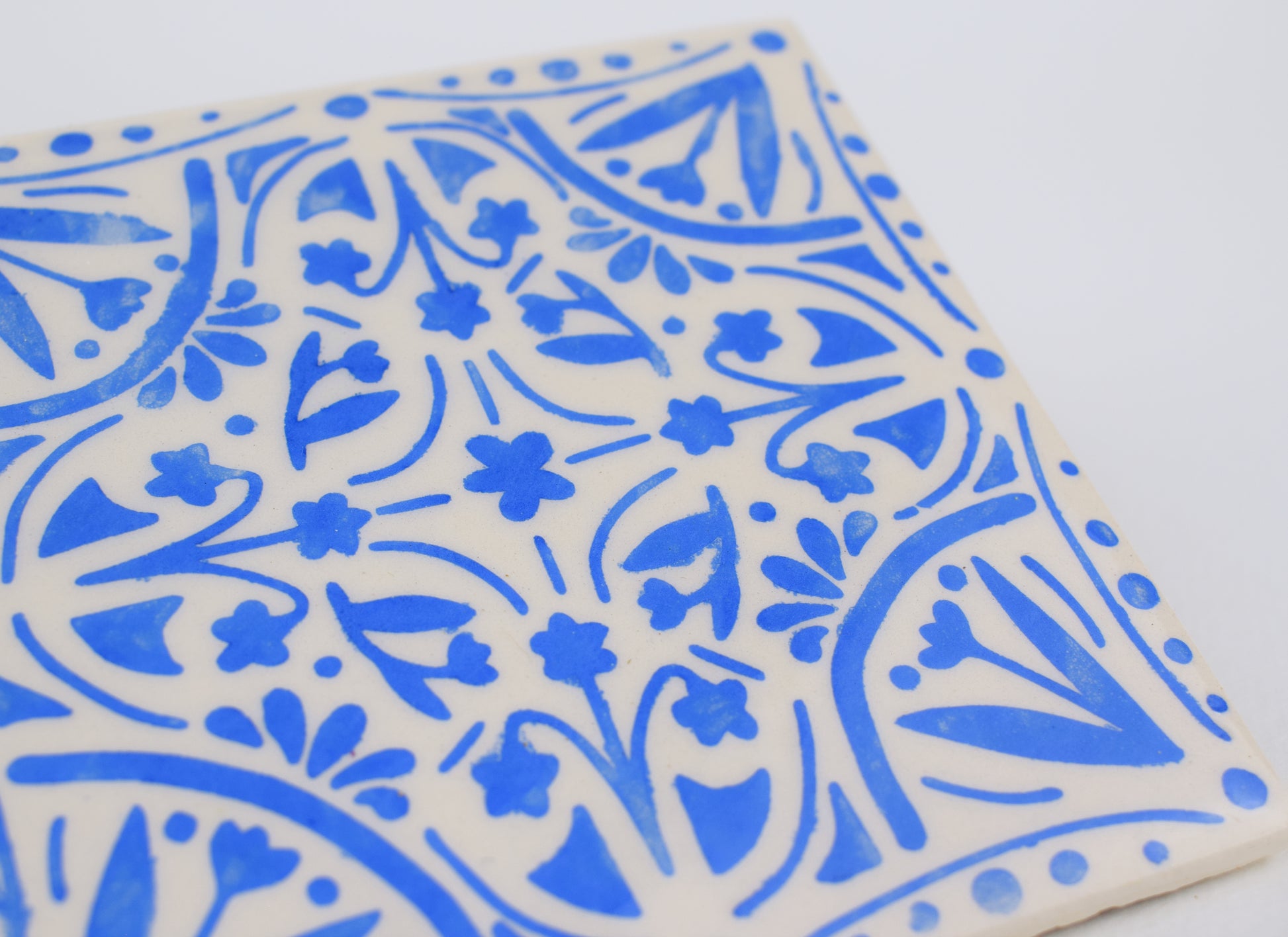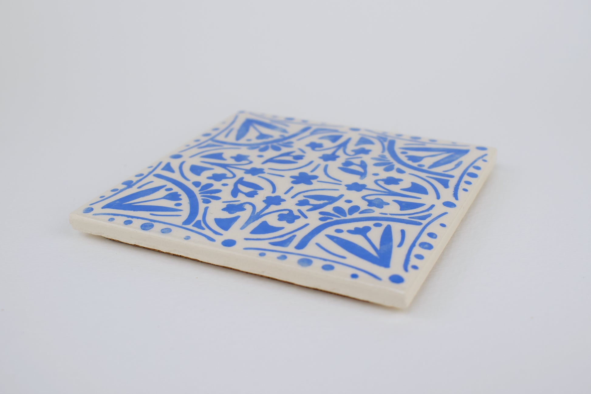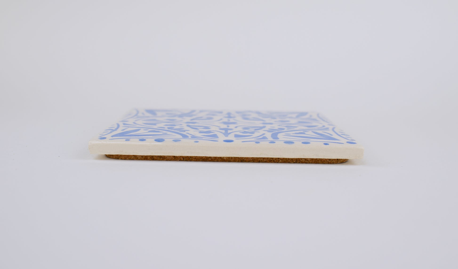 This earthenware coaster has been professionally made by a British company and hand-decorated in my cosy home studio. Twice fired to over 1000°C, each piece features a bright, joyful design — full of playful pattern and vibrant colour. No two are exactly alike, making each coaster a small, functional artwork in its own right. A cork base protects surfaces, making it both cheerful and practical.