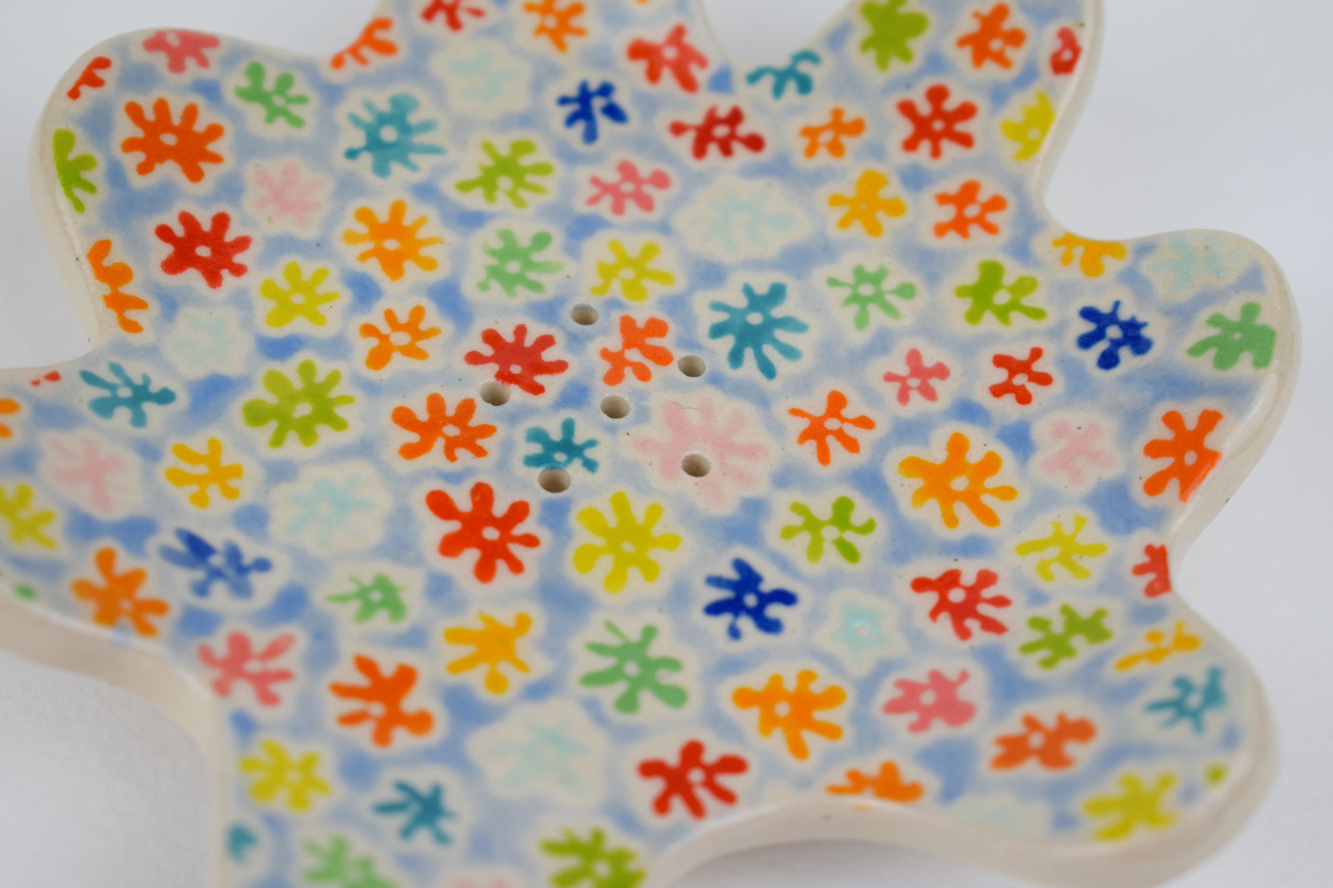 The joyful trinket dish is handmade on the potters wheel in my cosy home studio! Fired twice to over 1200 degrees, the holder is a one of a kind, with the unique pattern created through hand-painting layers of multiple colours of vibrant glaze.