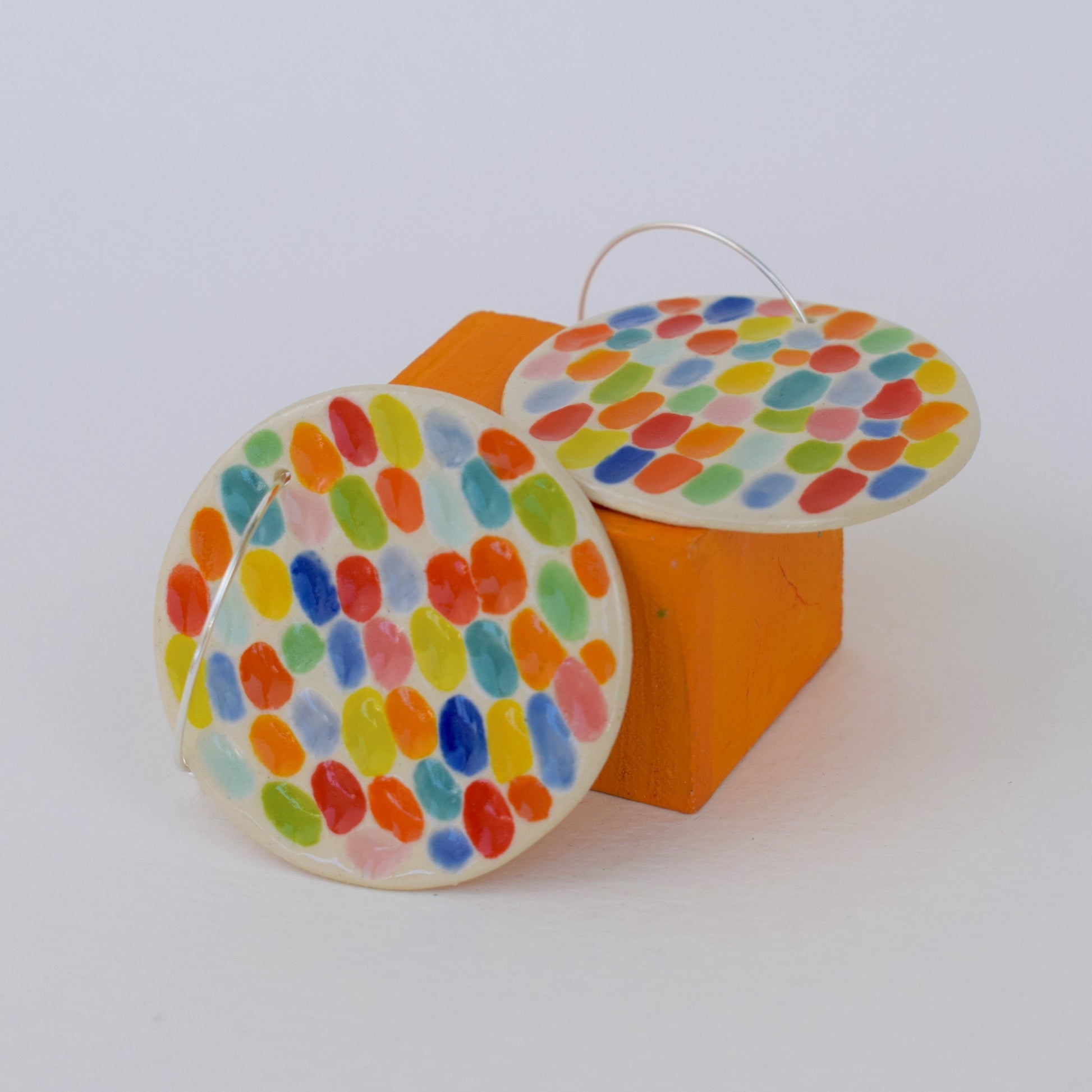 Experience everyday joy with these Emily Hett Art earrings—handmade and hand-painted to bring a burst of colour and personality to your style. Each pair is a miniature work of art, crafted with care and attention to detail. Lightweight and comfortable, they feature sterling silver hardware, making them perfect for sensitive ears. Whether you’re dressing up or brightening a casual look, these earrings add a cheerful, artistic touch that’s uniquely yours.