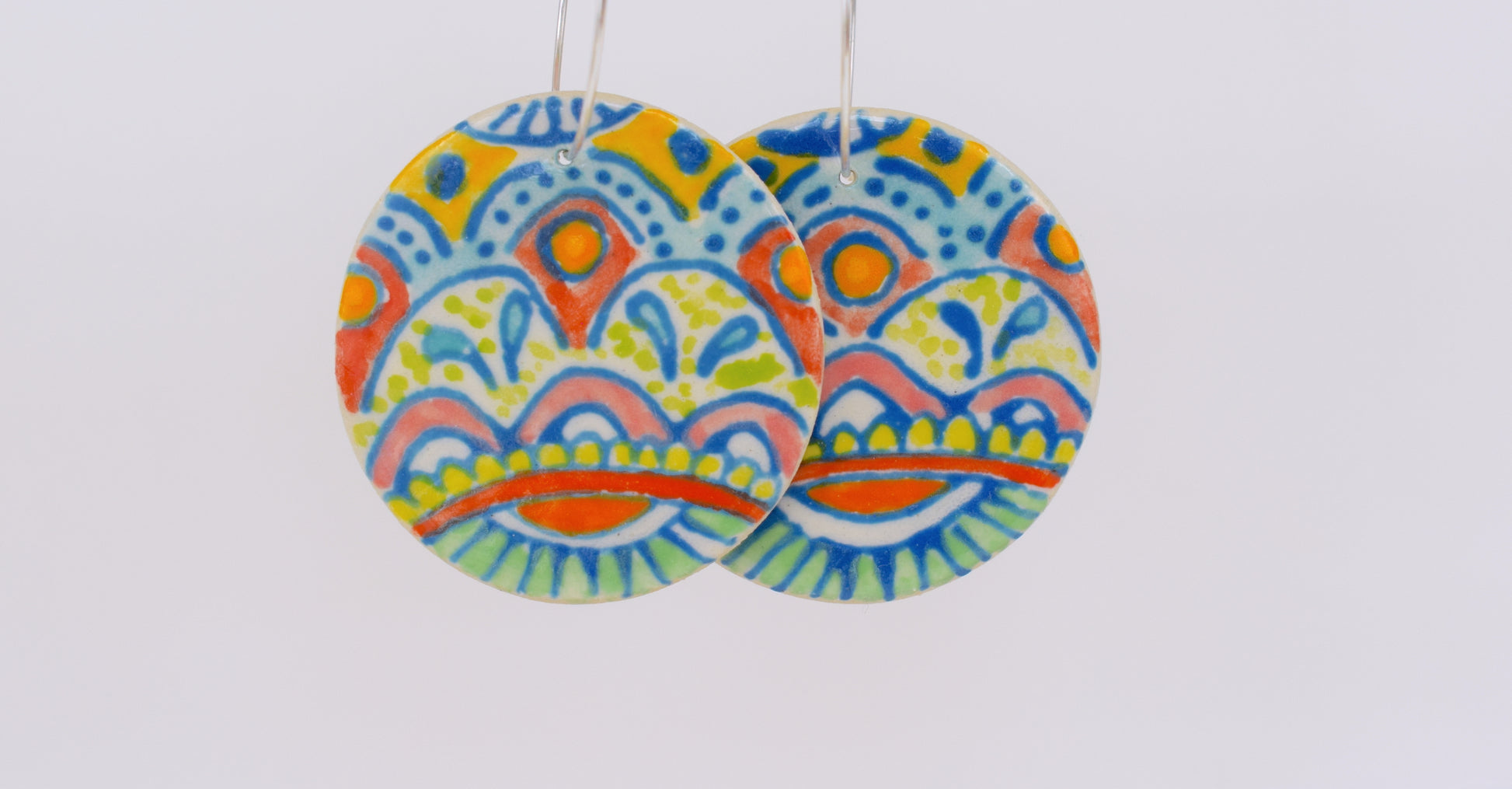 Experience everyday joy with these Emily Hett Art earrings—handmade and hand-painted to bring a burst of colour and personality to your style. Each pair is a miniature work of art, crafted with care and attention to detail. Lightweight and comfortable, they feature sterling silver hardware, making them perfect for sensitive ears. Whether you’re dressing up or brightening a casual look, these earrings add a cheerful, artistic touch that’s uniquely yours.