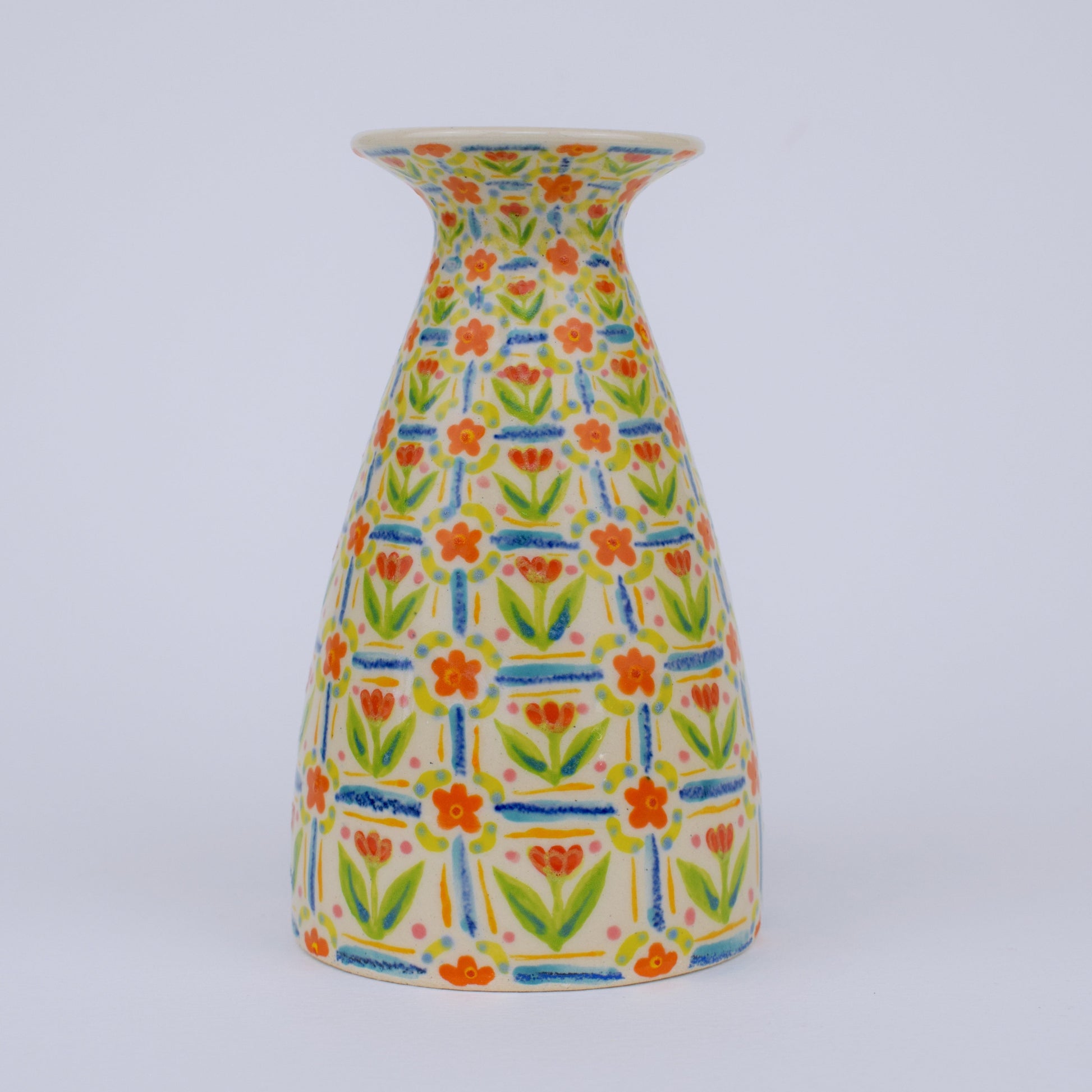 Each item is carefully packaged using recyclable materials wherever possible. Your vase will arrive wrapped in bright, happy colours and nestled securely in a sturdy box with compostable packers — ready to gift or enjoy.