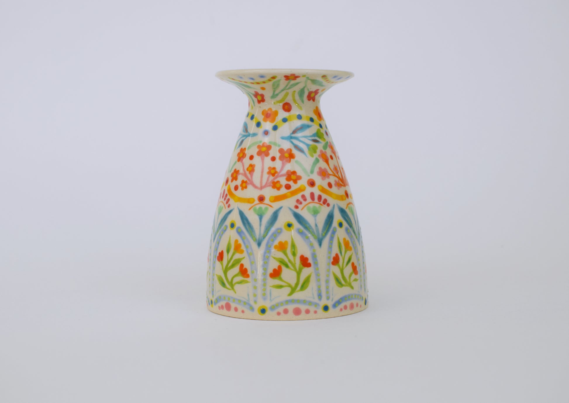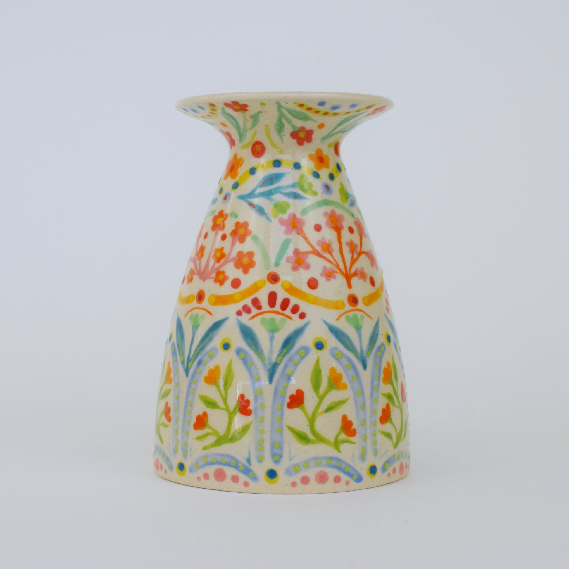 Each item is carefully packaged using recyclable materials wherever possible. Your vase will arrive wrapped in bright, happy colours and nestled securely in a sturdy box with compostable packers — ready to gift or enjoy.