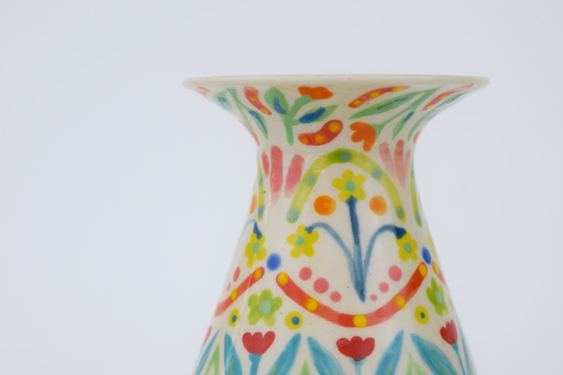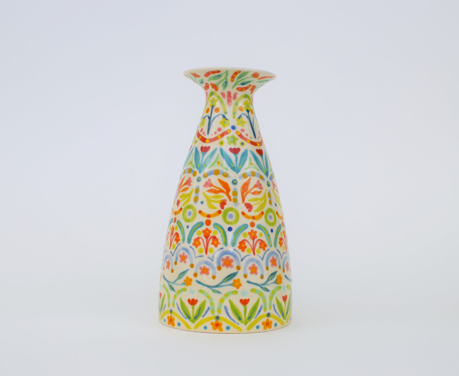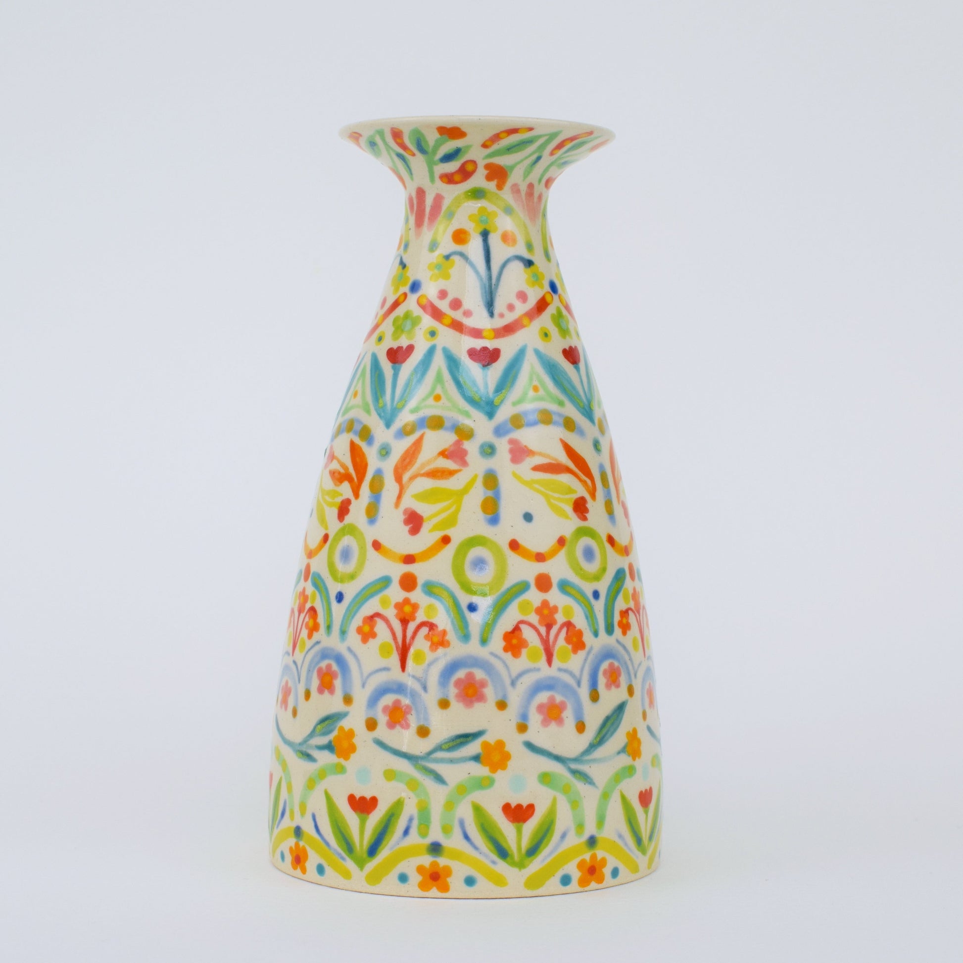 Each item is carefully packaged using recyclable materials wherever possible. Your vase will arrive wrapped in bright, happy colours and nestled securely in a sturdy box with compostable packers — ready to gift or enjoy.