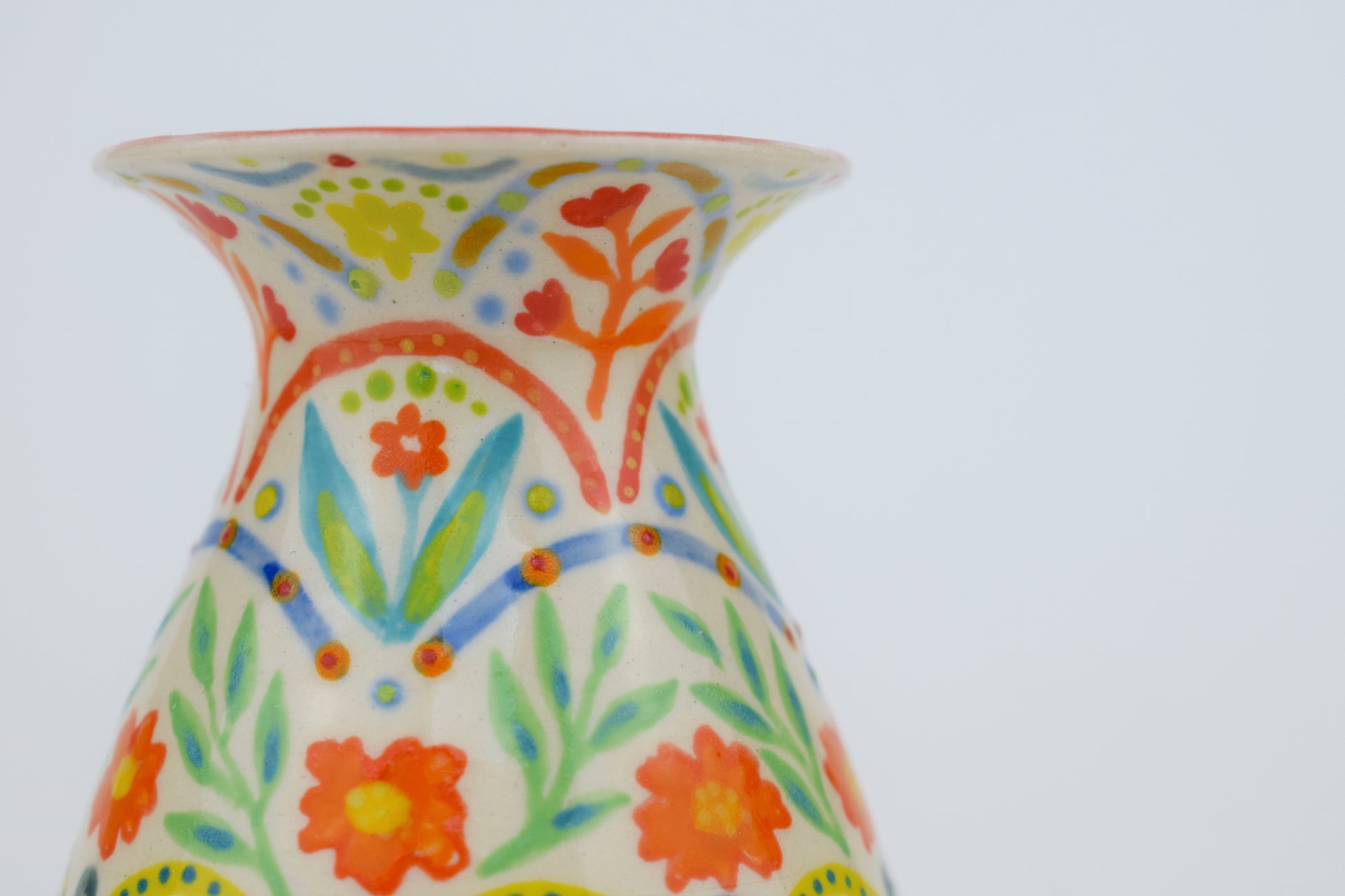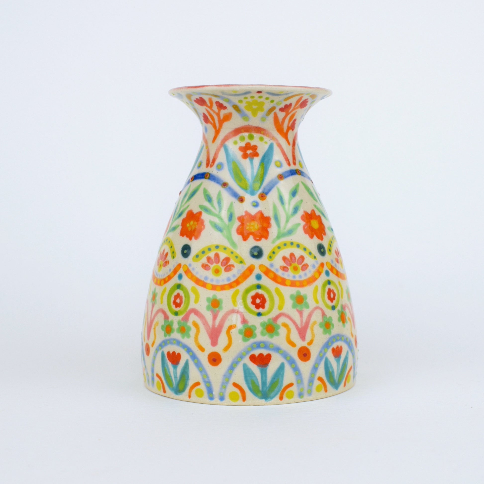 Each item is carefully packaged using recyclable materials wherever possible. Your vase will arrive wrapped in bright, happy colours and nestled securely in a sturdy box with compostable packers — ready to gift or enjoy.