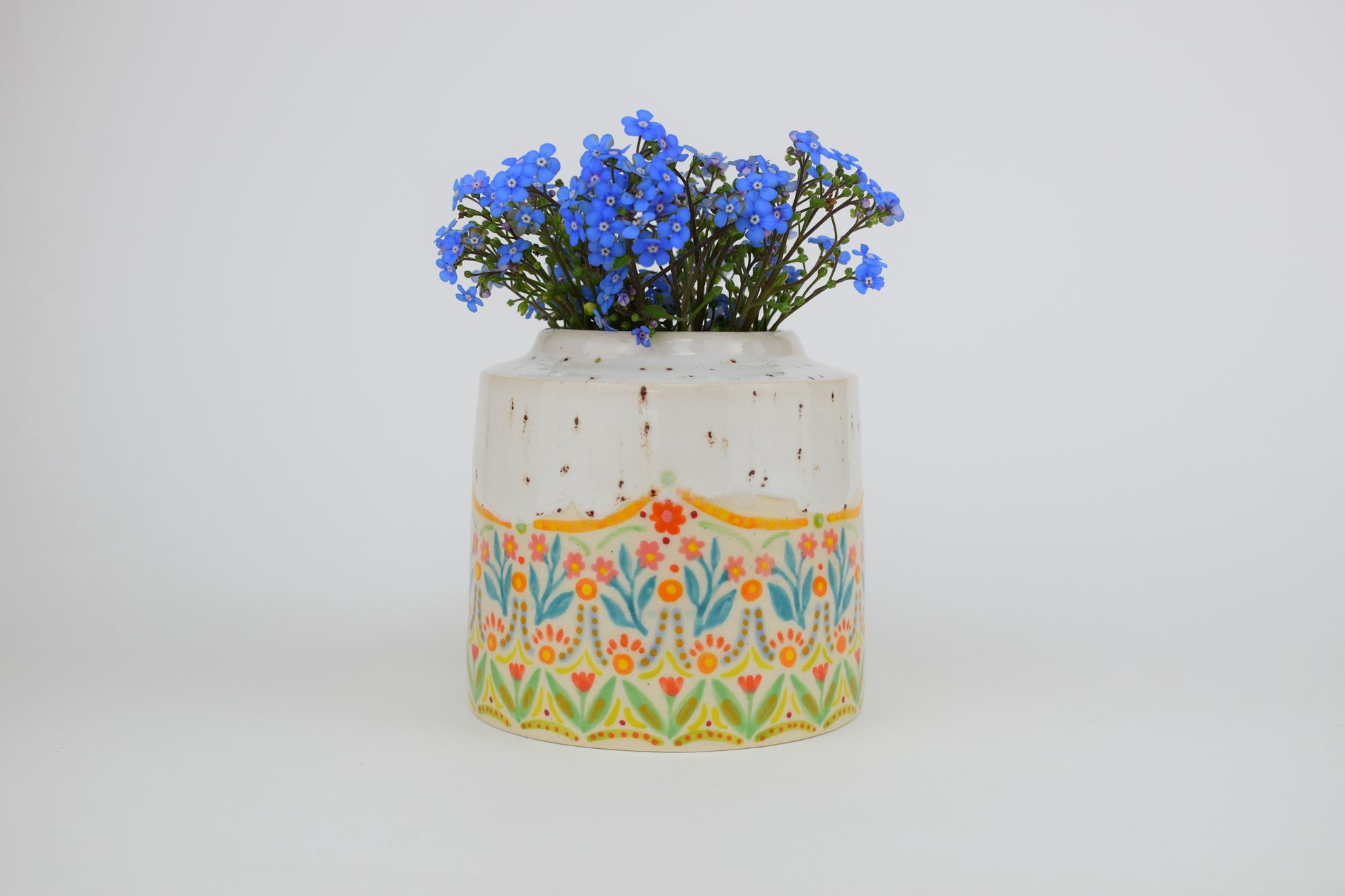 Each item is carefully packaged using recyclable materials wherever possible. Your vase will arrive wrapped in bright, happy colours and nestled securely in a sturdy box with compostable packers — ready to gift or enjoy.