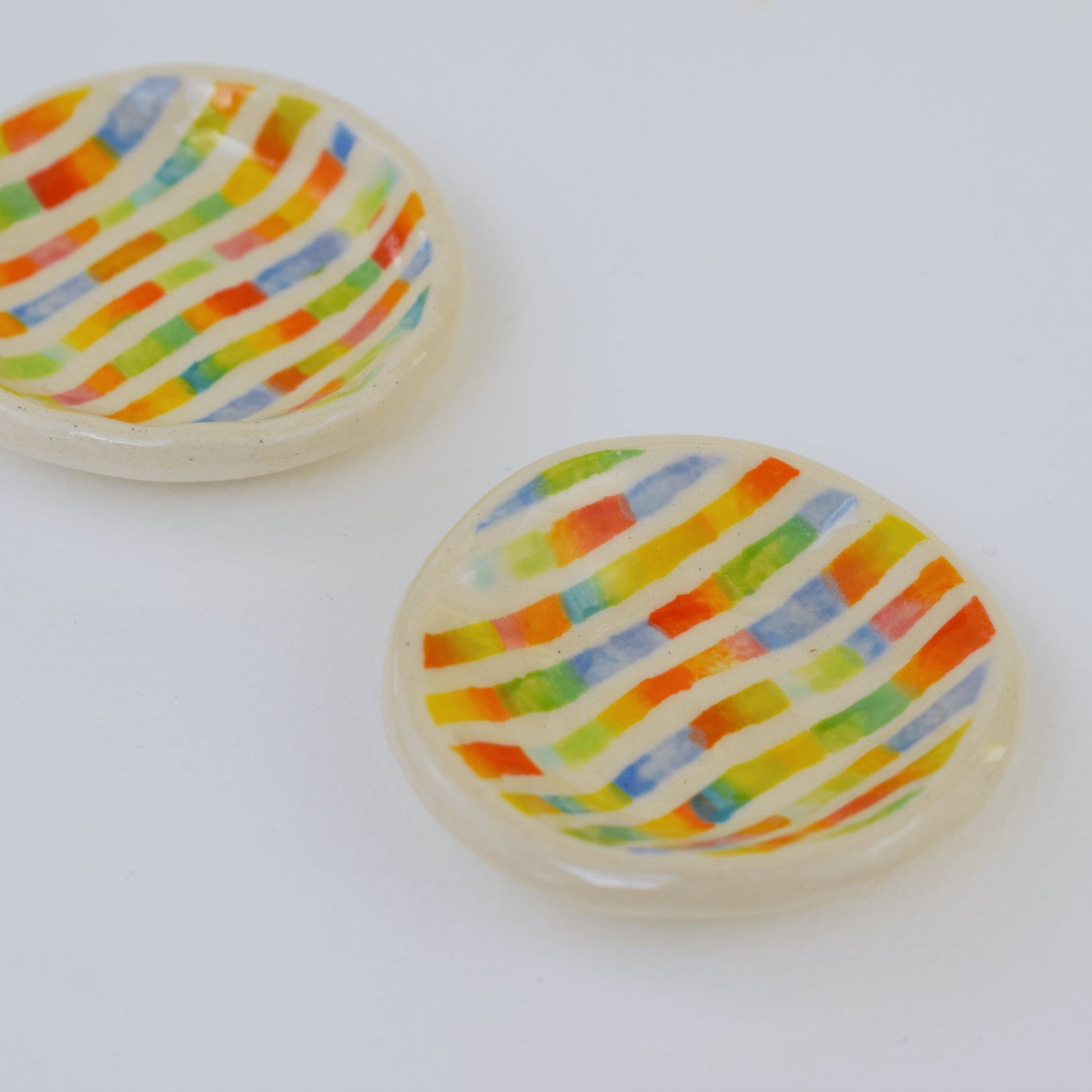 Adorned with joyful, expressive patterns in vibrant glazes, every dish brings a playful burst of colour to your space. Whether you're using it to hold rings, earrings, or tiny keepsakes, it’s the perfect way to add a little charm to your shelf, desk, or bedside table.
