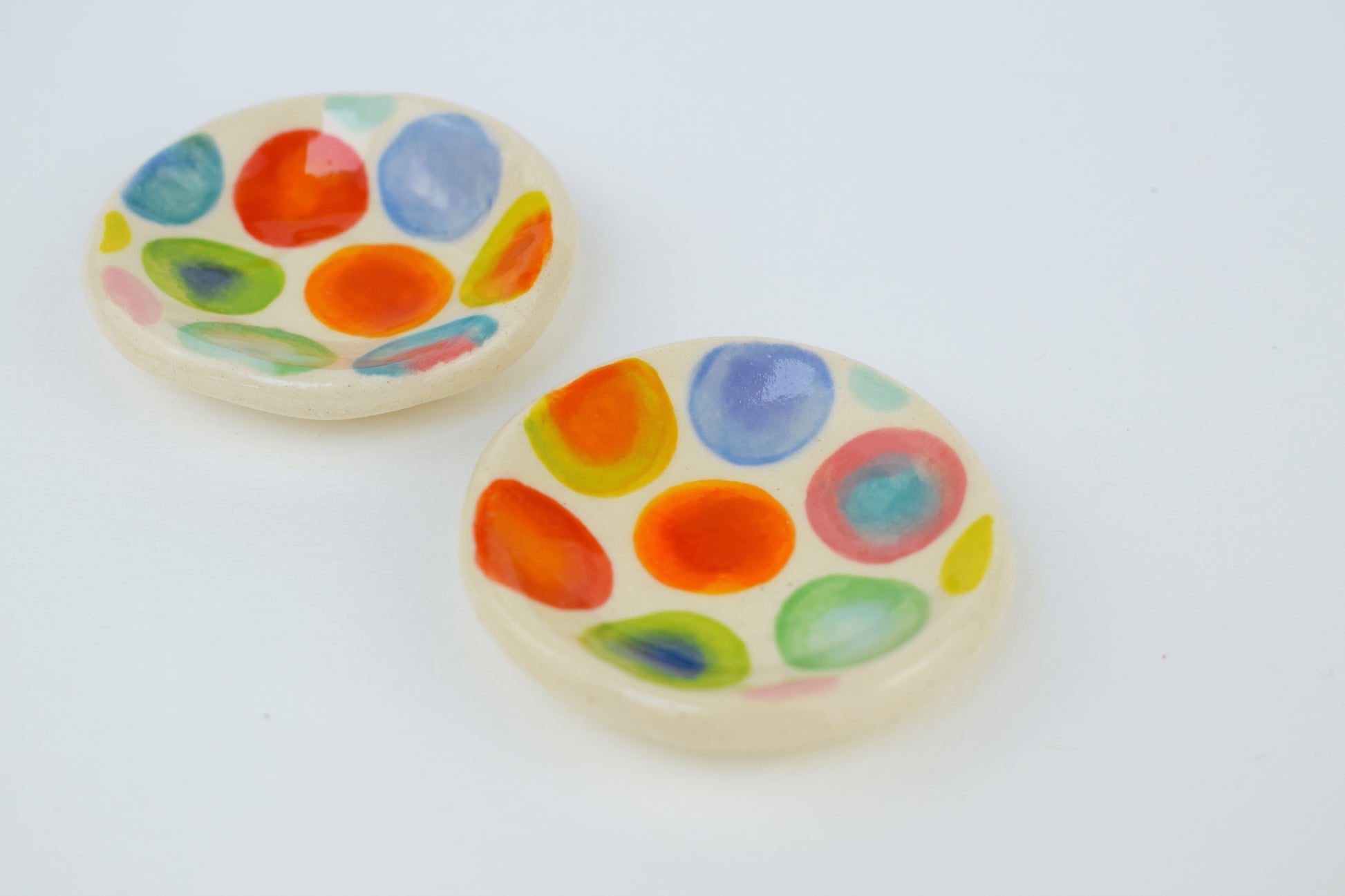 Adorned with joyful, expressive patterns in vibrant glazes, every dish brings a playful burst of colour to your space. Whether you're using it to hold rings, earrings, or tiny keepsakes, it’s the perfect way to add a little charm to your shelf, desk, or bedside table.