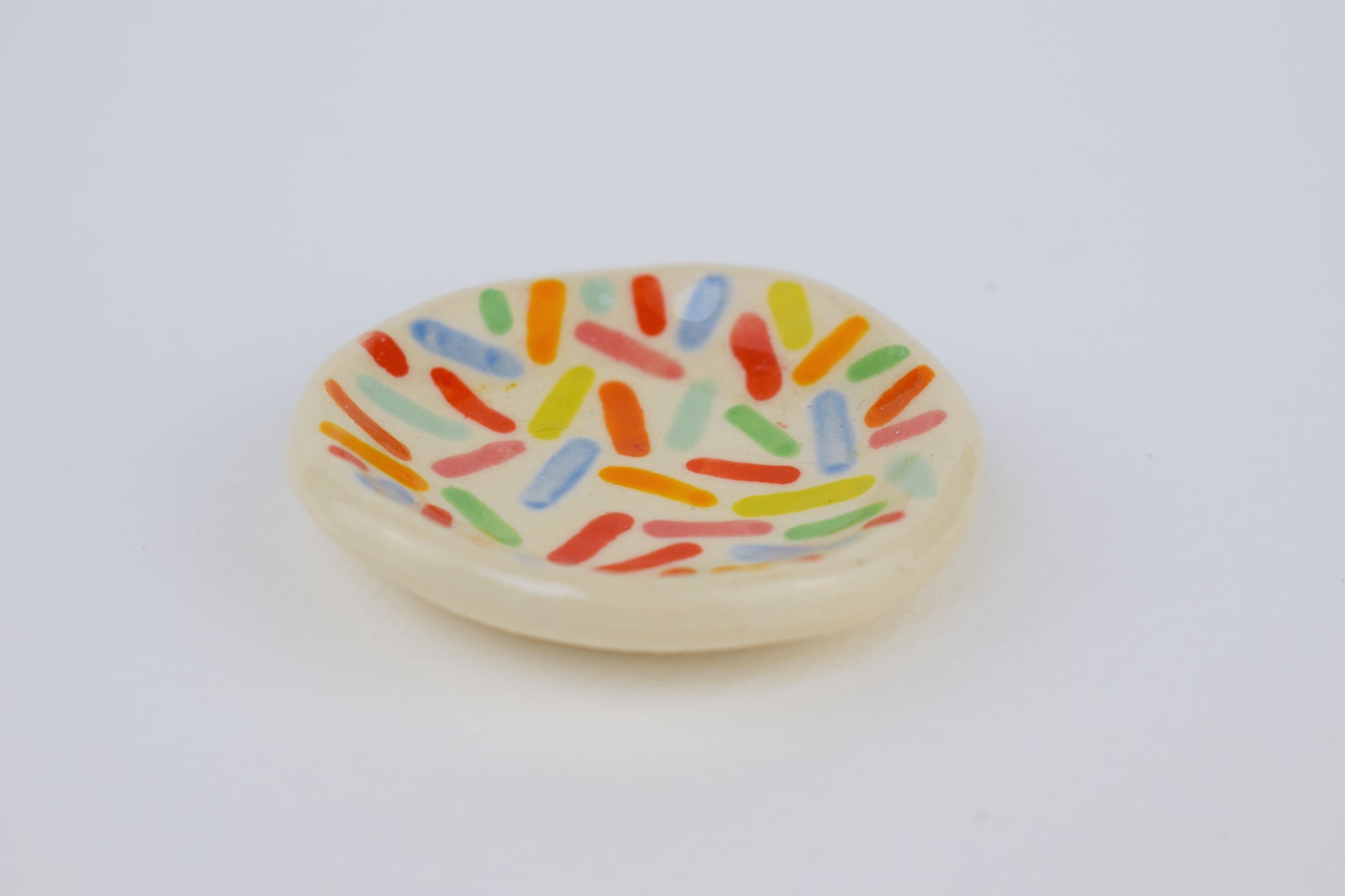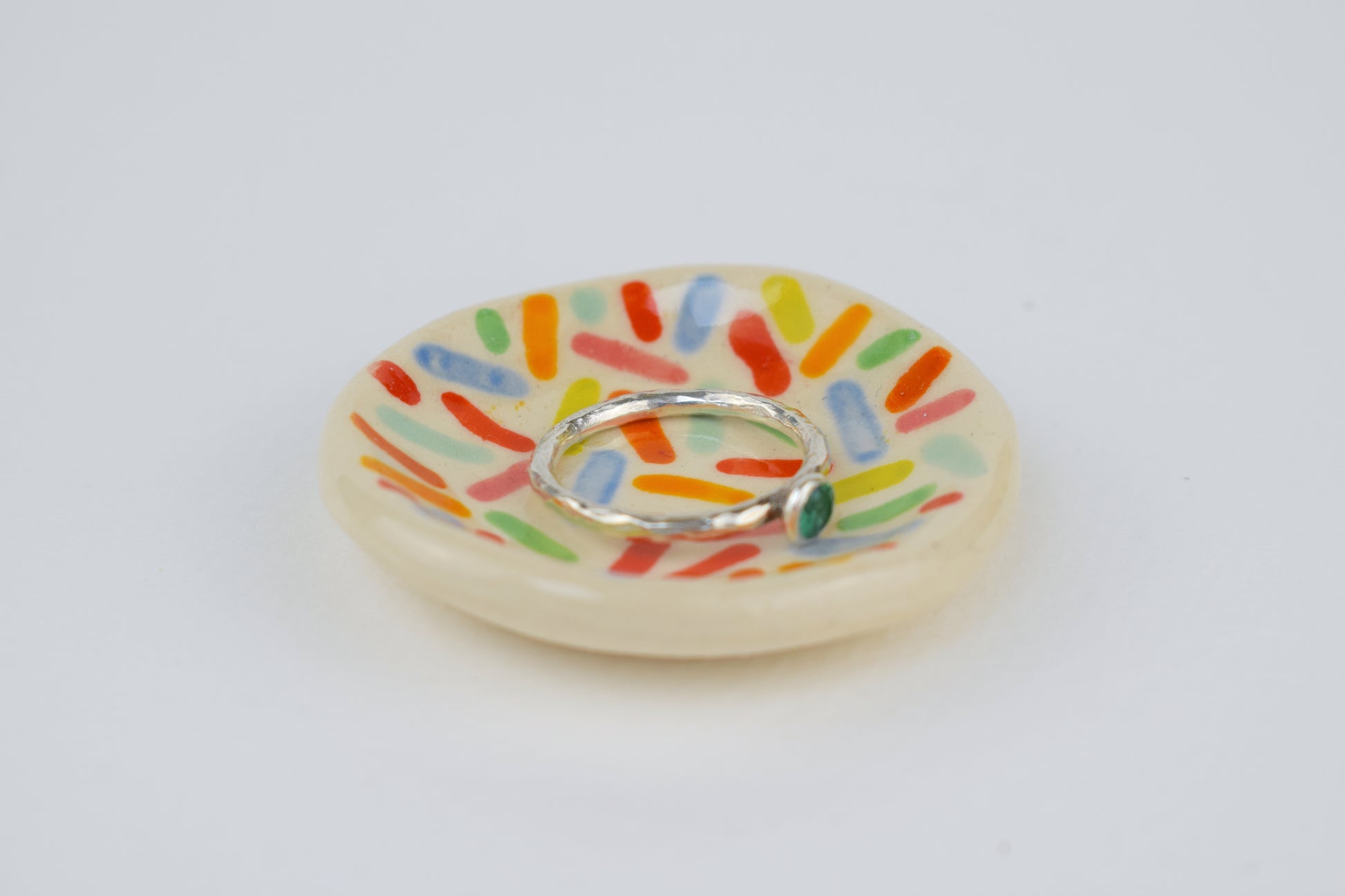 Adorned with joyful, expressive patterns in vibrant glazes, every dish brings a playful burst of colour to your space. Whether you're using it to hold rings, earrings, or tiny keepsakes, it’s the perfect way to add a little charm to your shelf, desk, or bedside table.