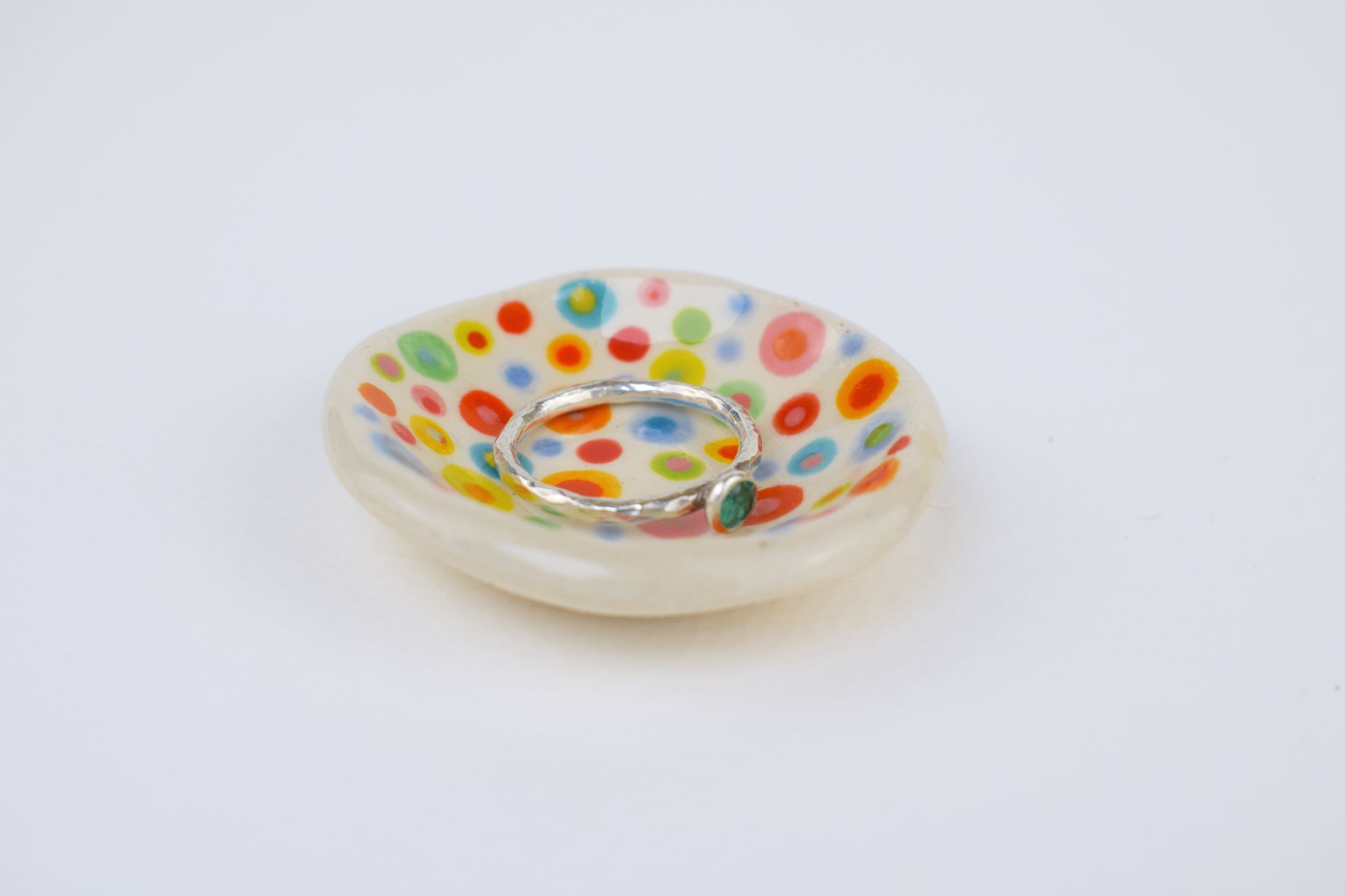 Adorned with joyful, expressive patterns in vibrant glazes, every dish brings a playful burst of colour to your space. Whether you're using it to hold rings, earrings, or tiny keepsakes, it’s the perfect way to add a little charm to your shelf, desk, or bedside table.