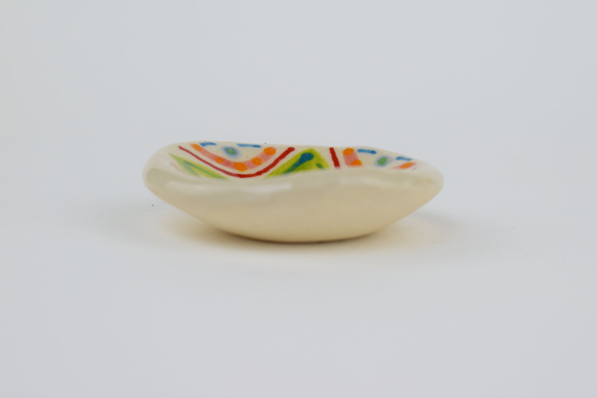 Adorned with joyful, expressive patterns in vibrant glazes, every dish brings a playful burst of colour to your space. Whether you're using it to hold rings, earrings, or tiny keepsakes, it’s the perfect way to add a little charm to your shelf, desk, or bedside table.