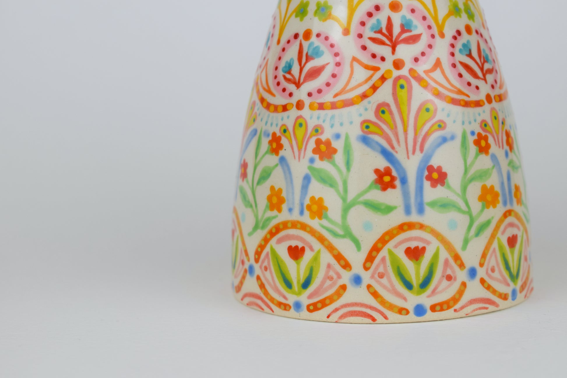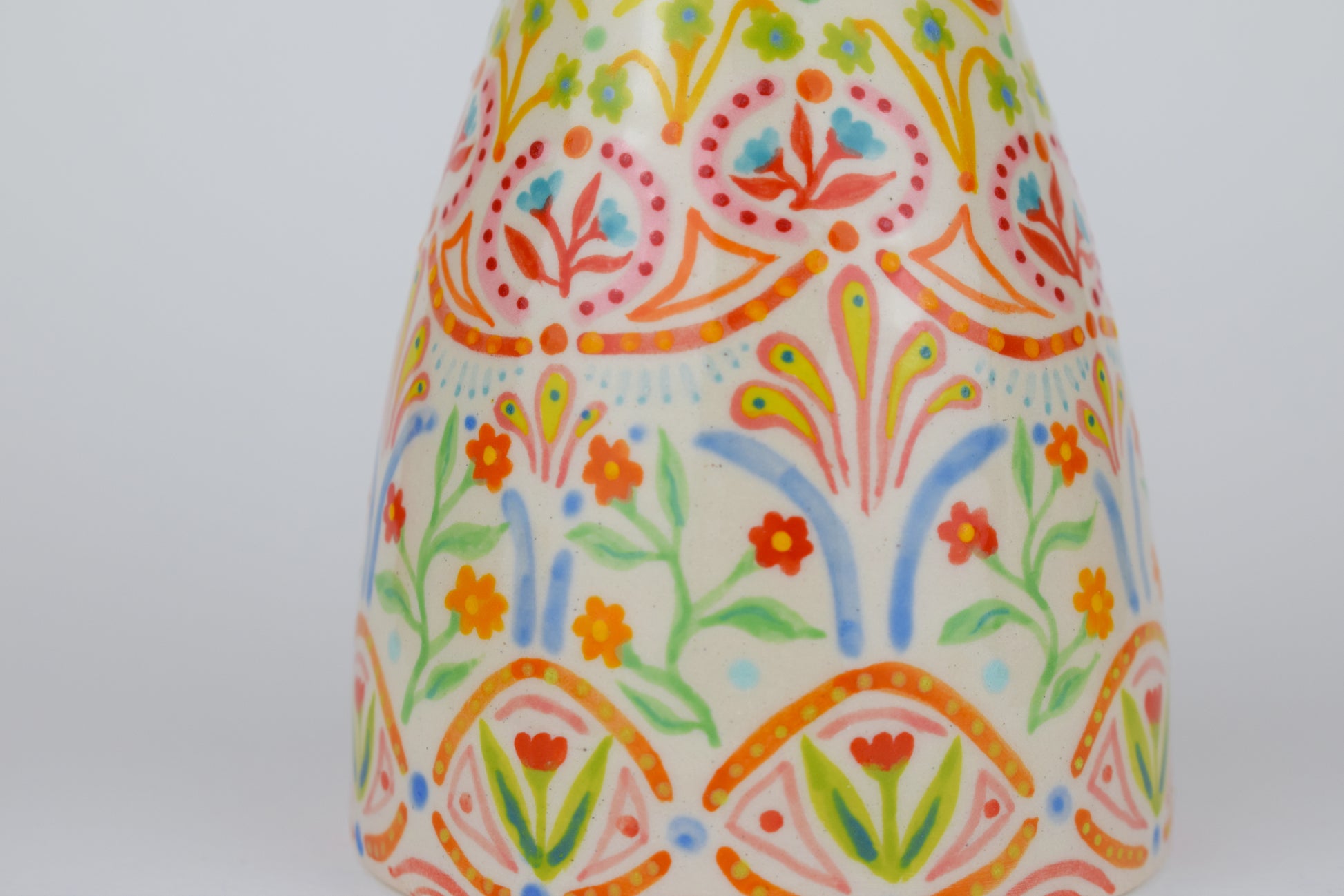 Each item is carefully packaged using recyclable materials wherever possible. Your vase will arrive wrapped in bright, happy colours and nestled securely in a sturdy box with compostable packers — ready to gift or enjoy.
