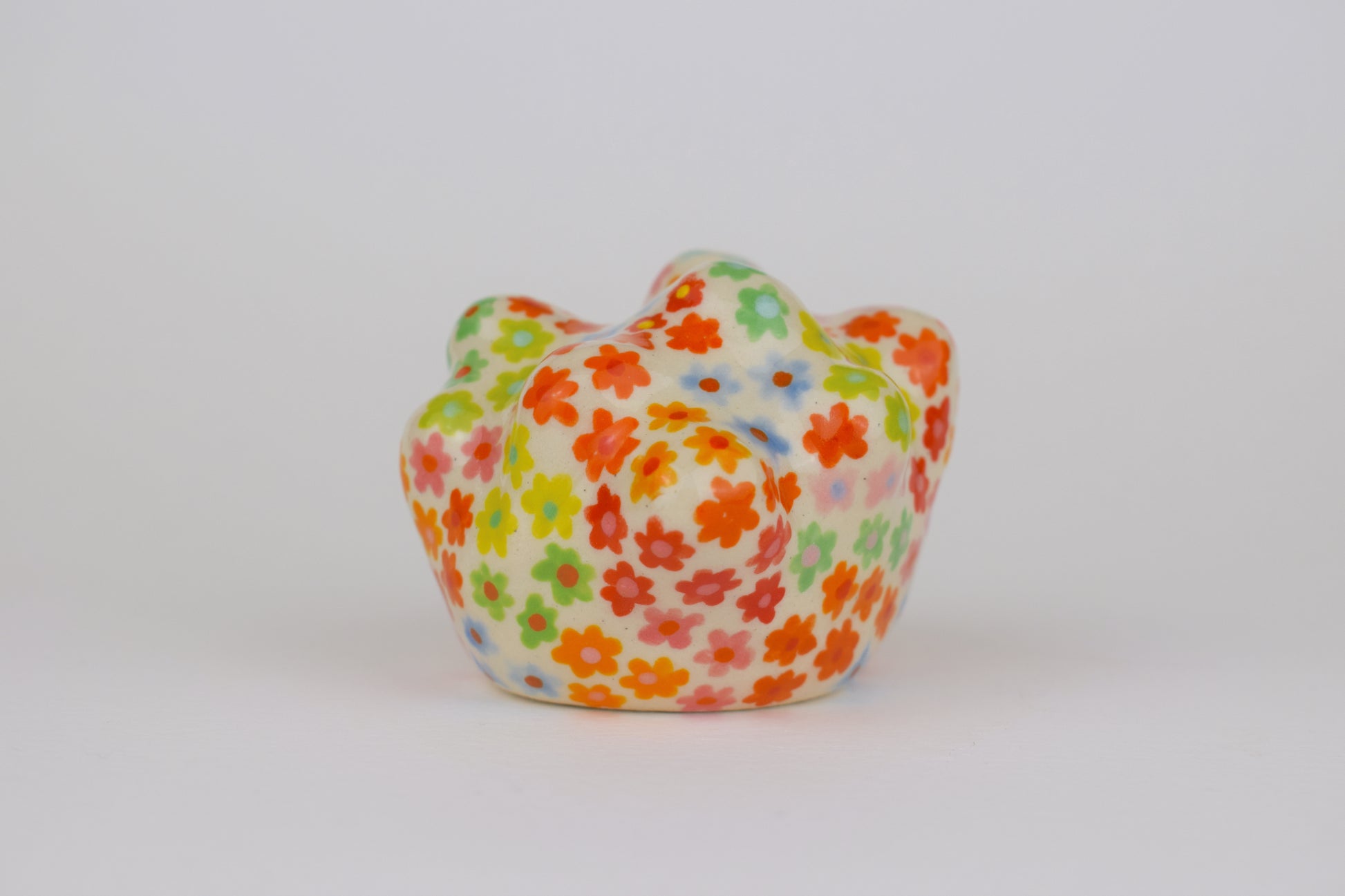 This stoneware mini sculpture has been hand built and painted with vibrant glazes using patterns inspired by nature. Twice fired to over 1000 degrees the ceramic blob can be used as a paper weight, to brighten your mantle piece or as a little colourful friend for your work desk!