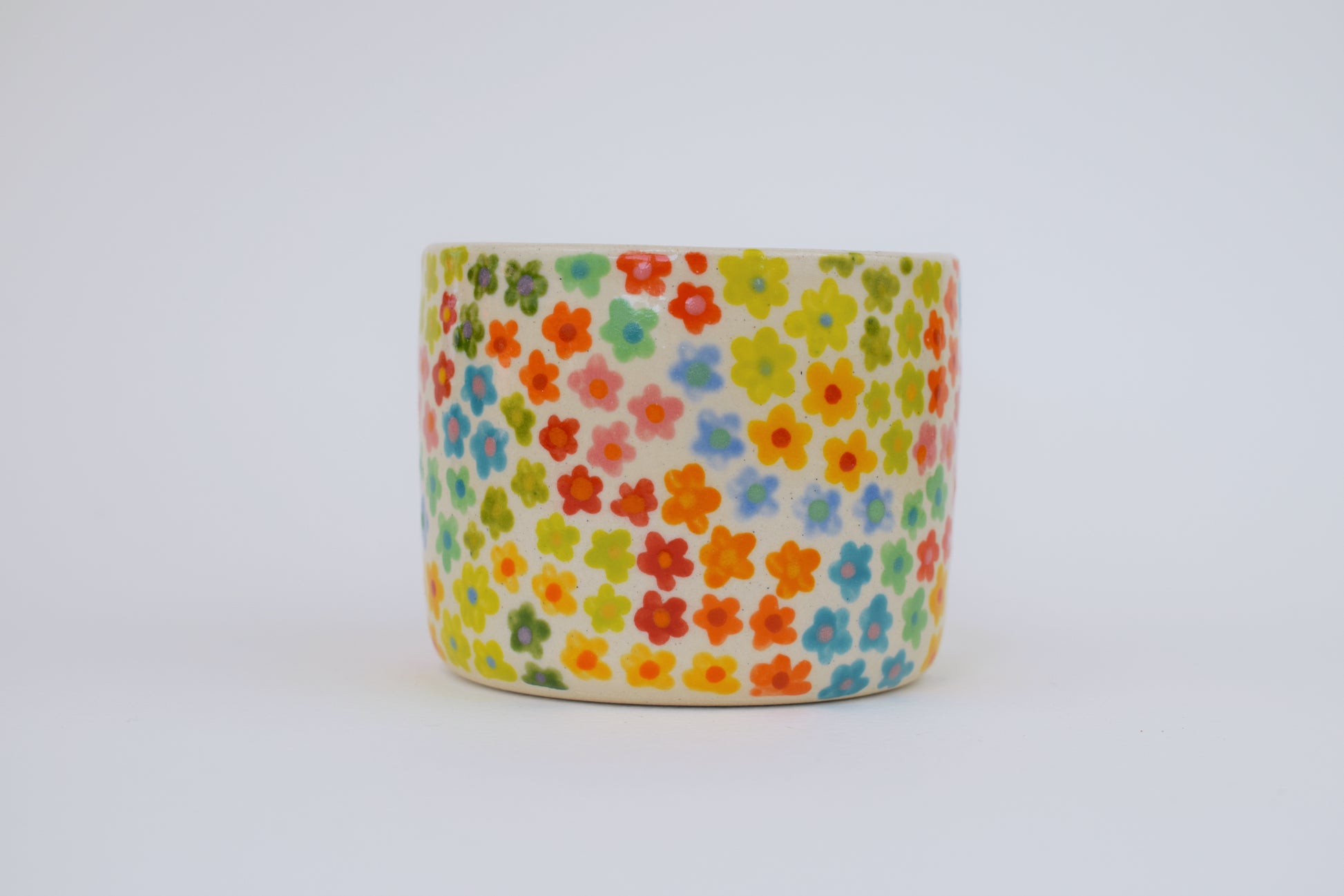 The tea light holder is a highly decorative stoneware ceramic made in my cosy home studio. Hand thrown on the wheel and fired to over 1000 degrees, each ceramic is hand painted with layers of vibrant glazes to create each unique surface pattern design!