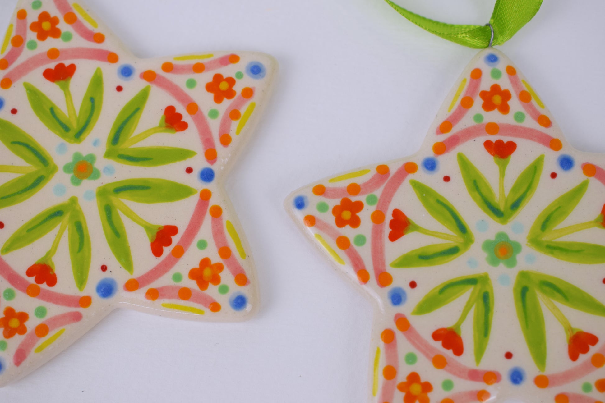 A joyful hand-painted pattern inspired by nature and the beauty of natural materials. Each decoration is thoughtfully crafted to bring warmth and happiness to your home. Perfect for adding a touch of cheer to the Christmas tree, yet beautiful enough to be enjoyed all year round. Full of character and charm, this design celebrates the simple joy of handmade artistry.