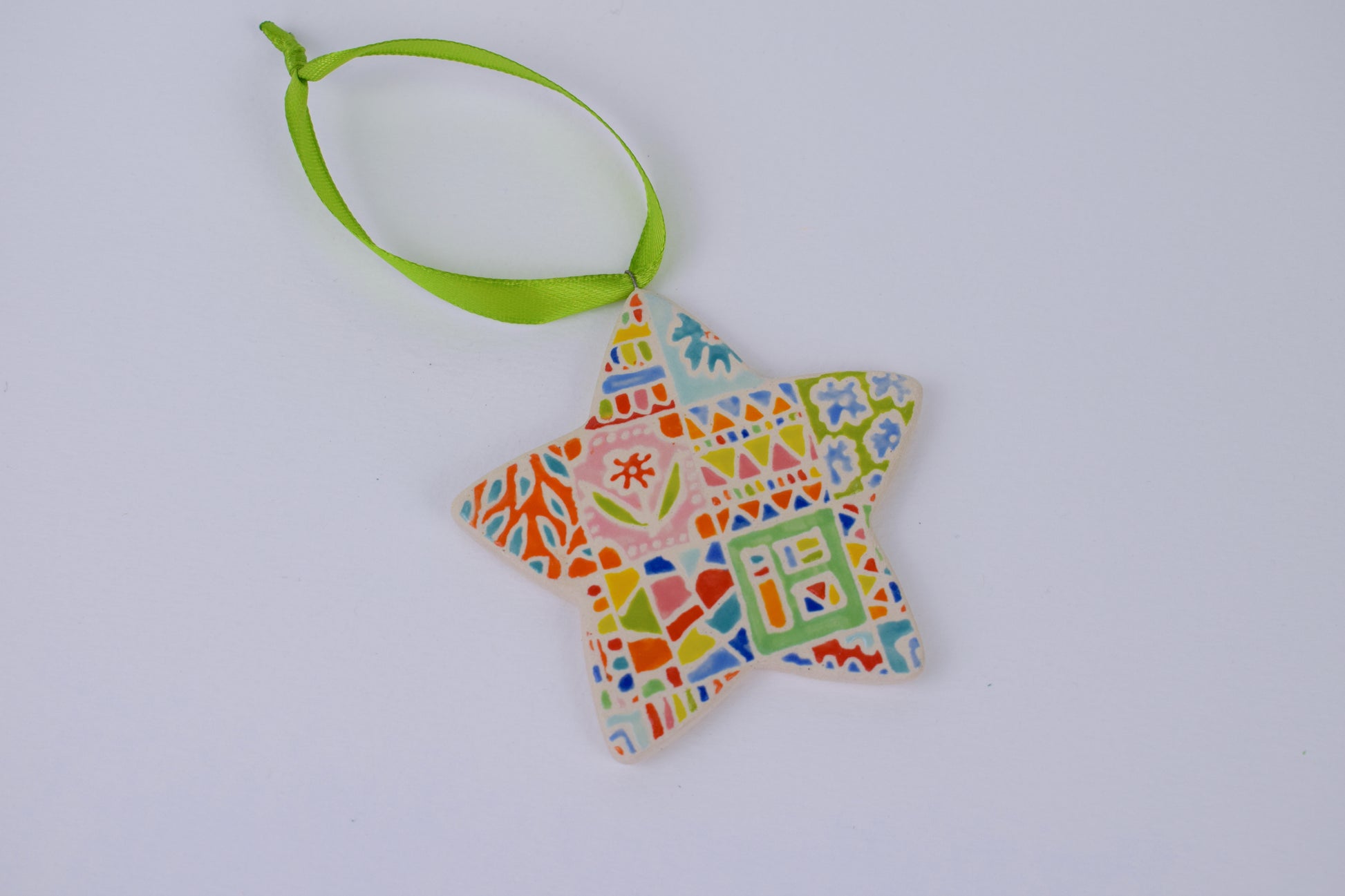 A joyful hand-painted pattern inspired by nature and the beauty of natural materials. Each decoration is thoughtfully crafted to bring warmth and happiness to your home. Perfect for adding a touch of cheer to the Christmas tree, yet beautiful enough to be enjoyed all year round. Full of character and charm, this design celebrates the simple joy of handmade artistry.