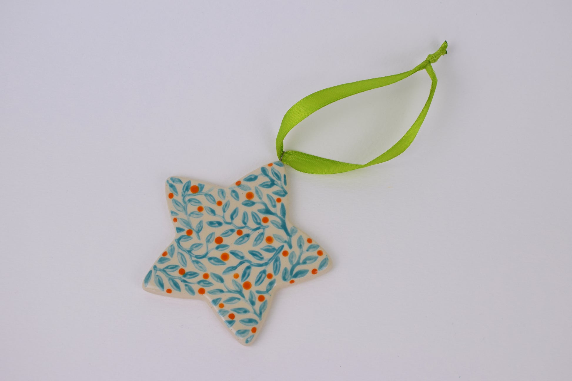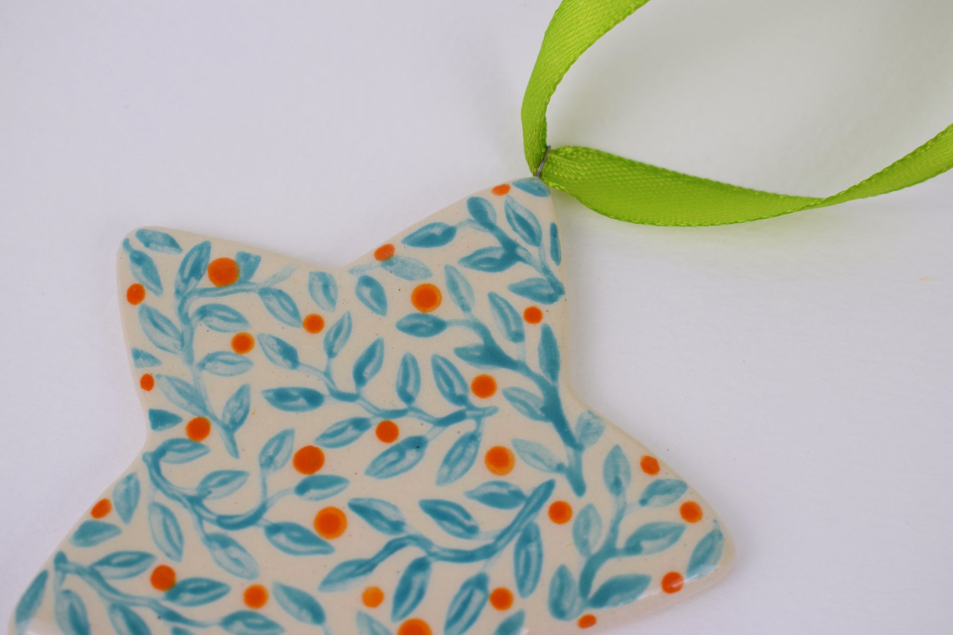 A joyful hand-painted pattern inspired by nature and the beauty of natural materials. Each decoration is thoughtfully crafted to bring warmth and happiness to your home. Perfect for adding a touch of cheer to the Christmas tree, yet beautiful enough to be enjoyed all year round. Full of character and charm, this design celebrates the simple joy of handmade artistry.