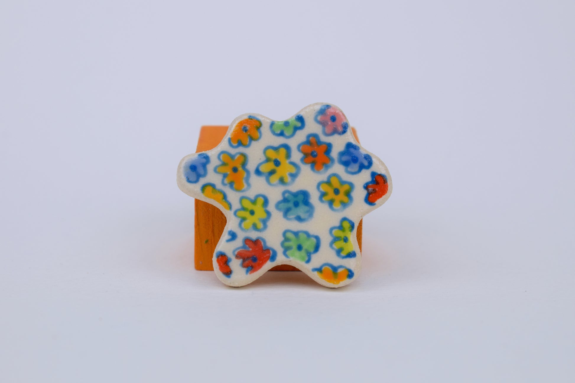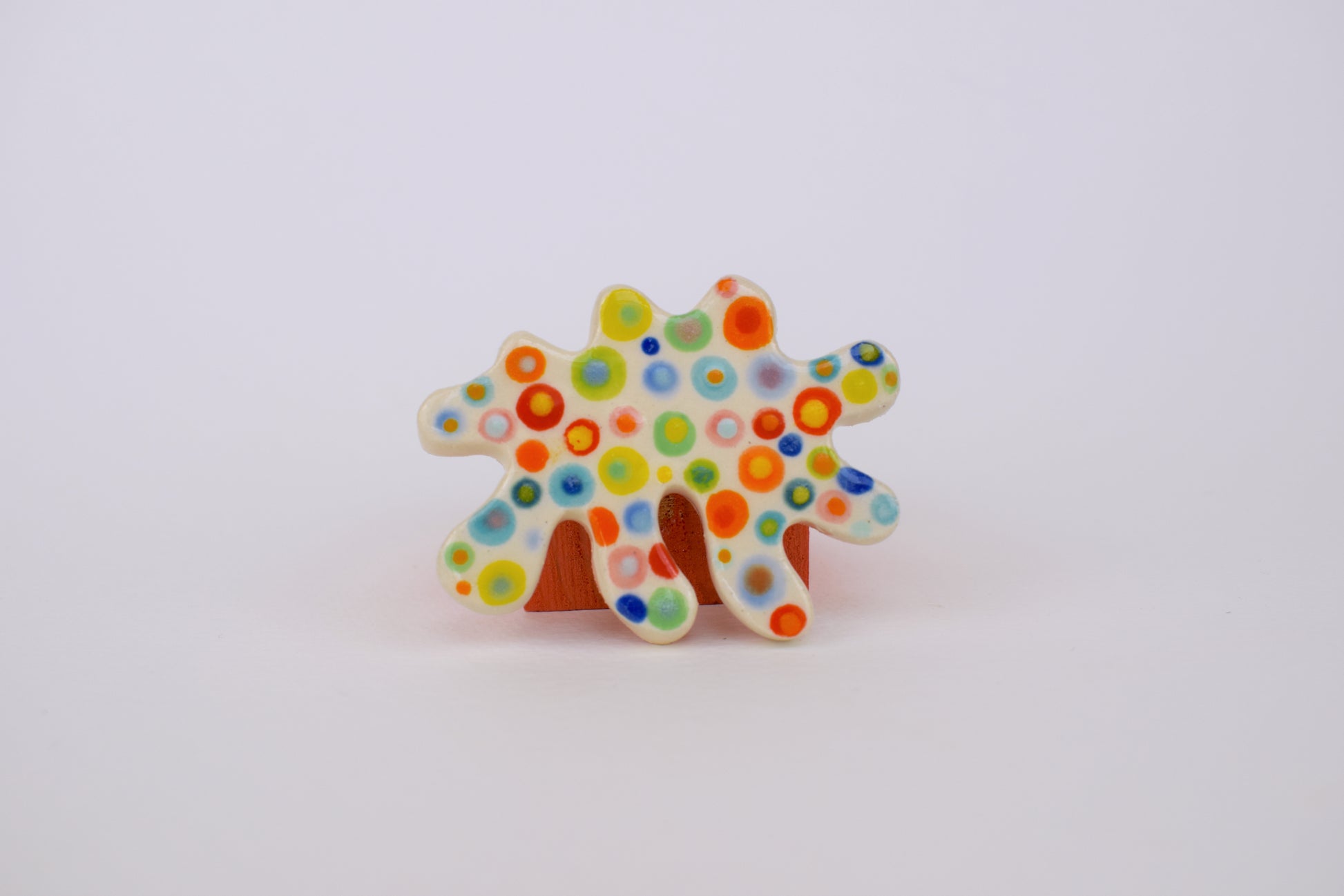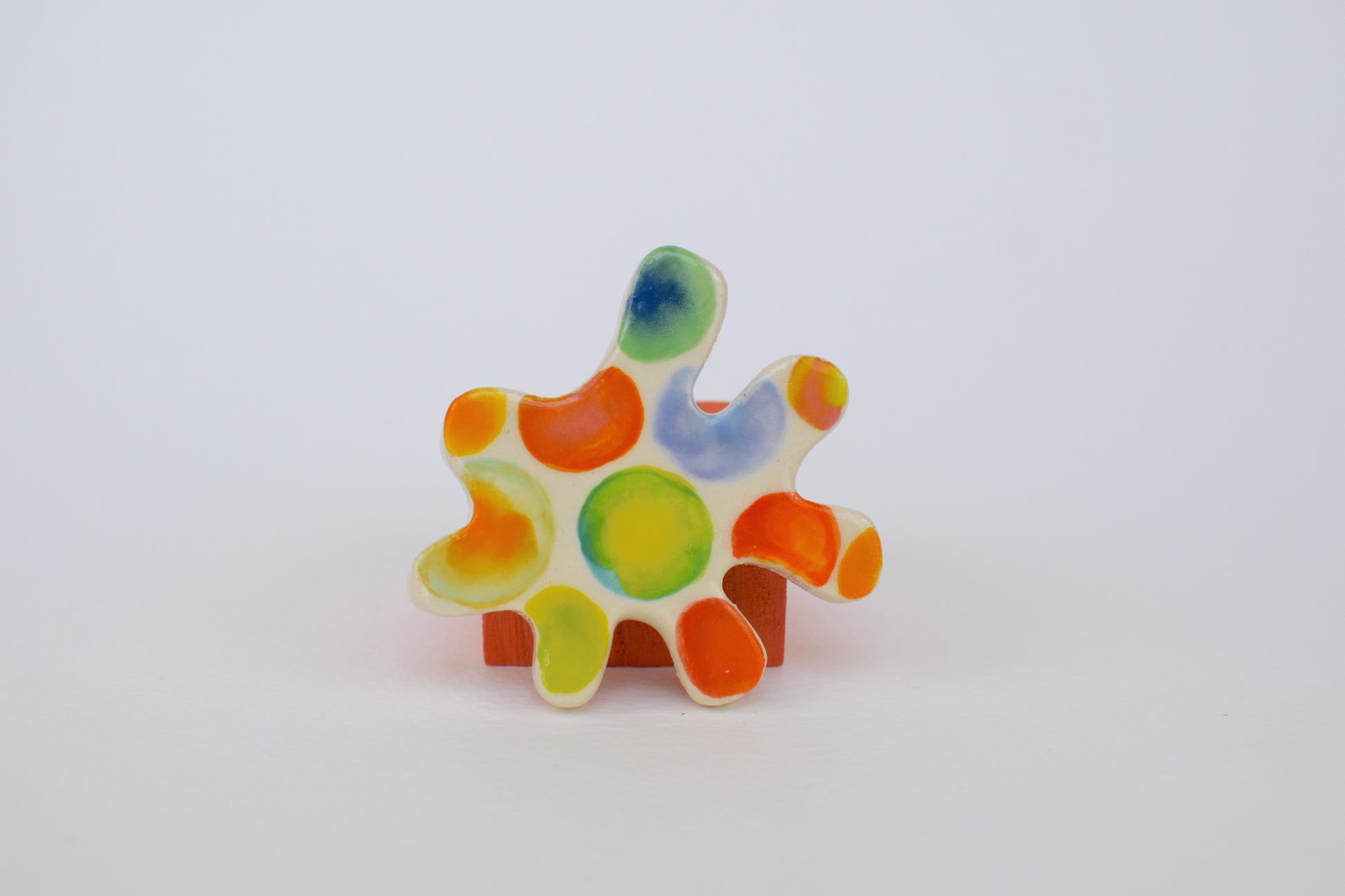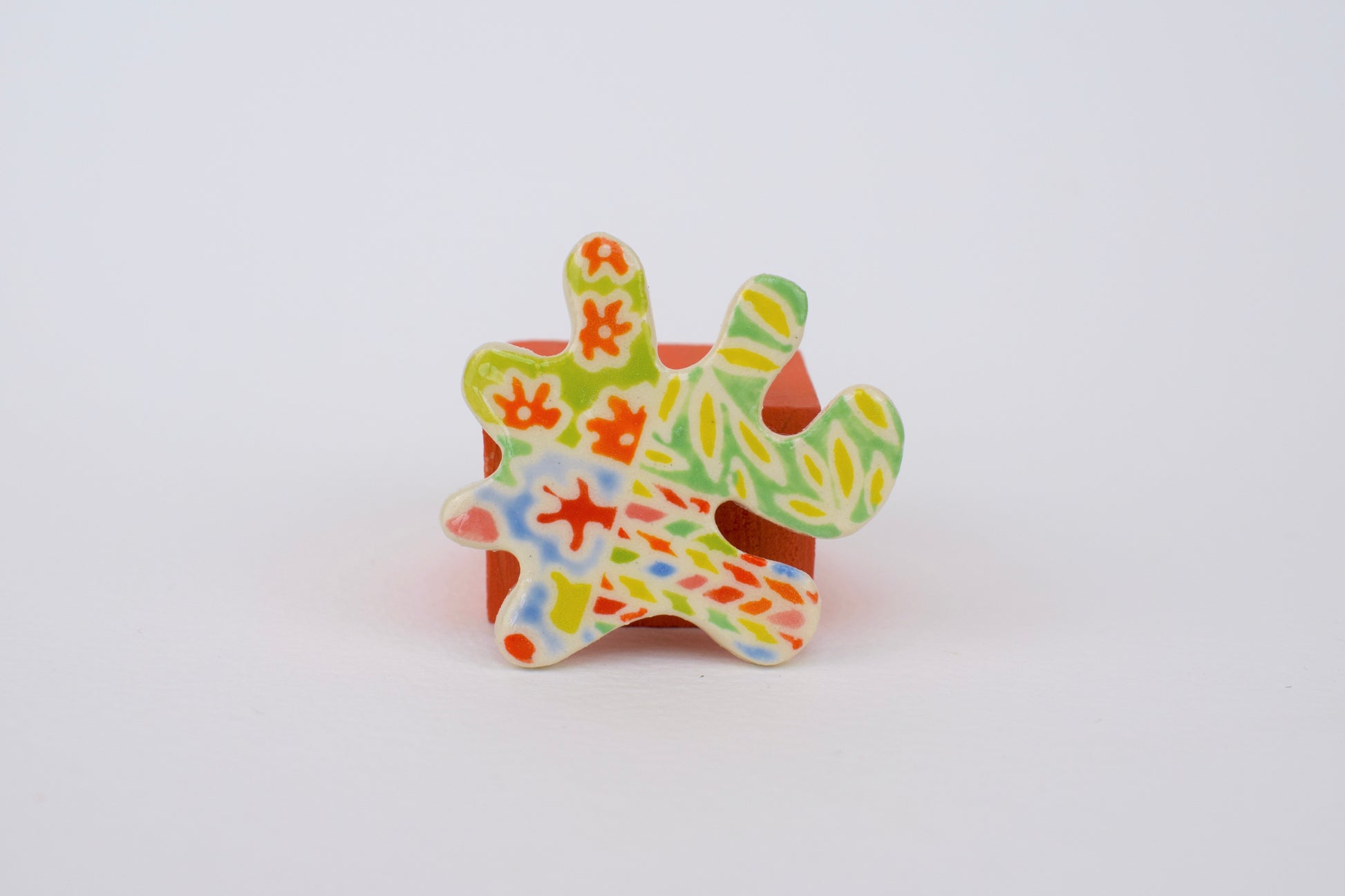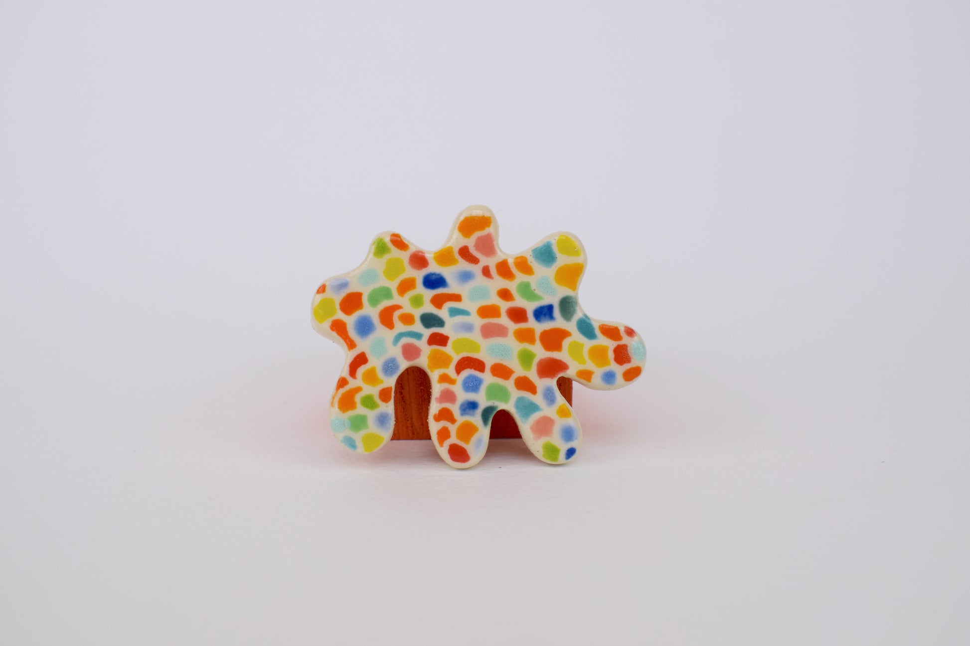 These multicoloured magnets are small bursts of joy — each one hand-cut, glazed, and individually fired to over 1200°C in my home studio. Inspired by both nature and architecture, they feature playful shapes and vibrant colours that bring life to any fridge, pinboard or magnetic surface. Every magnet is unique, with slight variations that reflect their handmade nature.