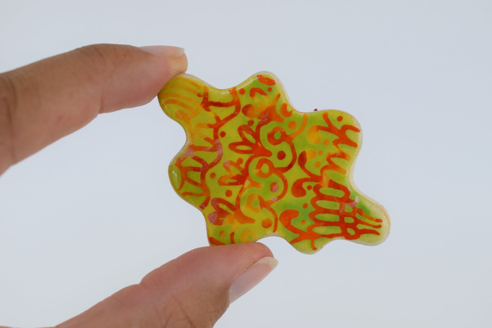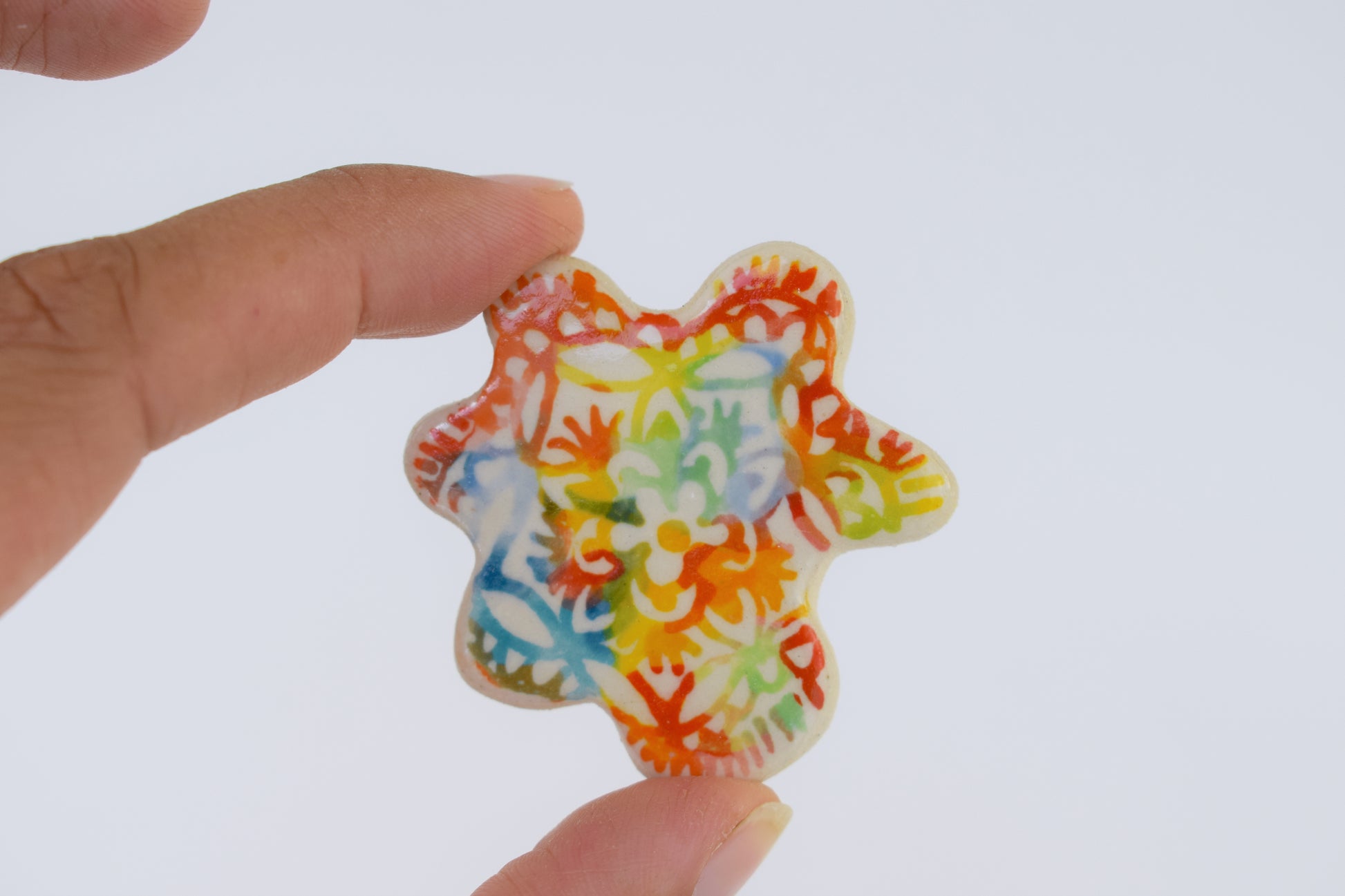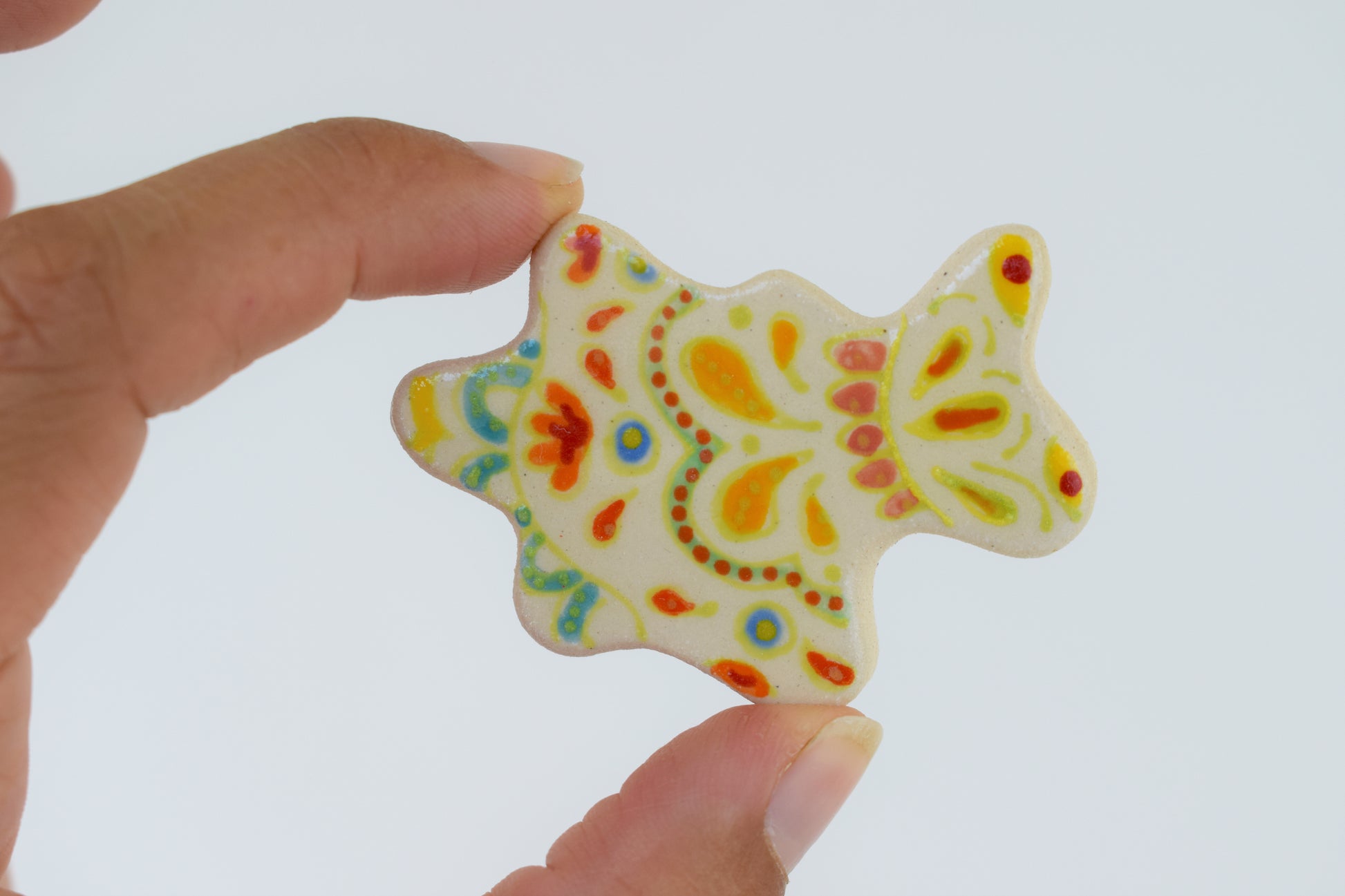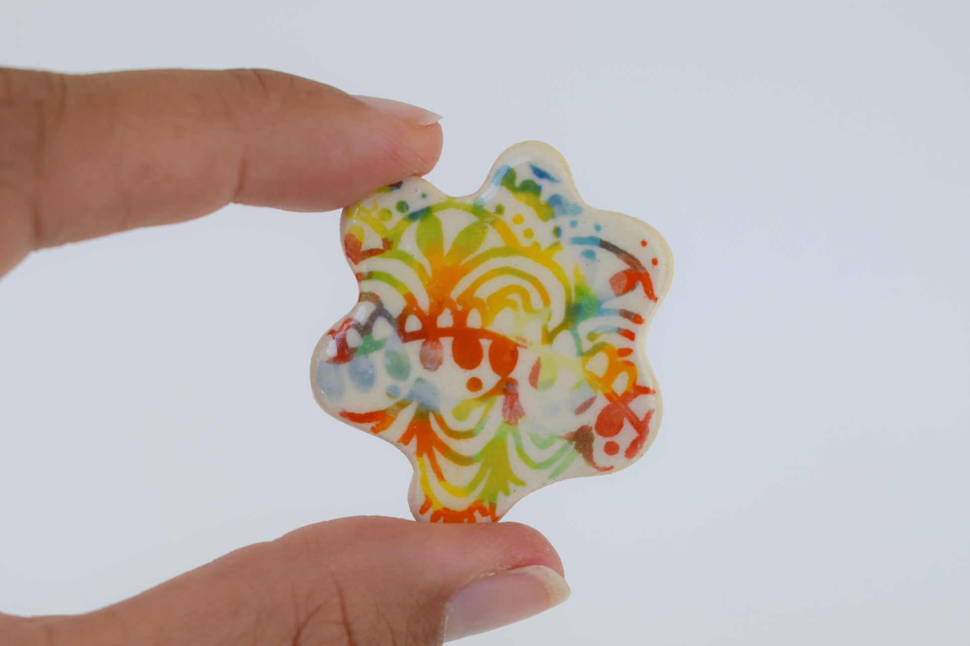 These multicoloured magnets are small bursts of joy — each one hand-cut, glazed, and individually fired to over 1200°C in my home studio. Inspired by both nature and architecture, they feature playful shapes and vibrant colours that bring life to any fridge, pinboard or magnetic surface. Every magnet is unique, with slight variations that reflect their handmade nature.