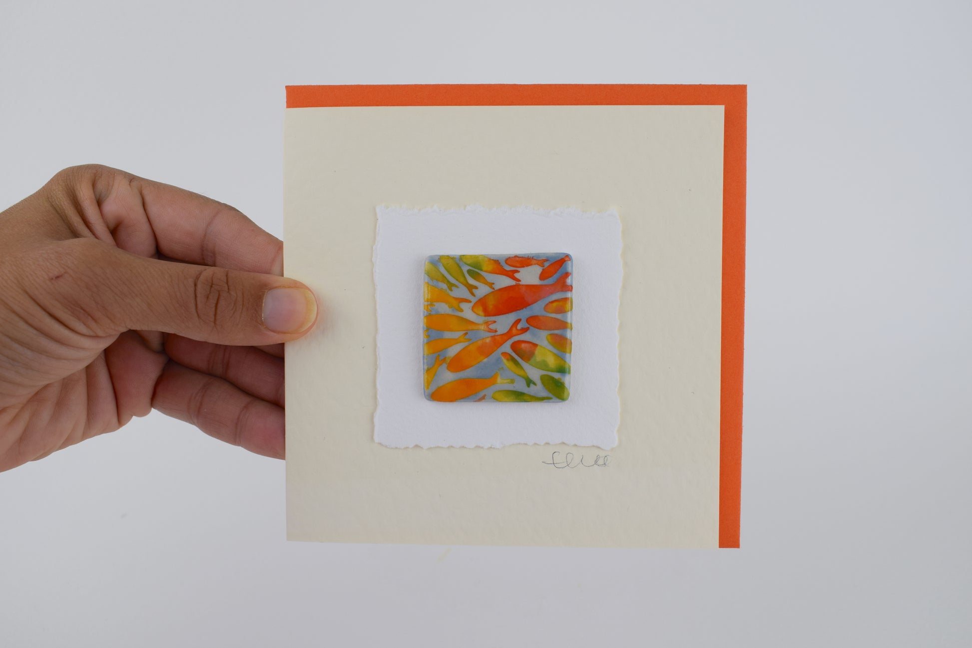 The ceramic piece is then thoughtfully mounted on a luxurious 300gsm ivory hammered card, creating a beautiful contrast in texture and tone. Each card is hand-signed and stamped with the Emily Hett Art logo — a mark of its originality and heartfelt craftsmanship.