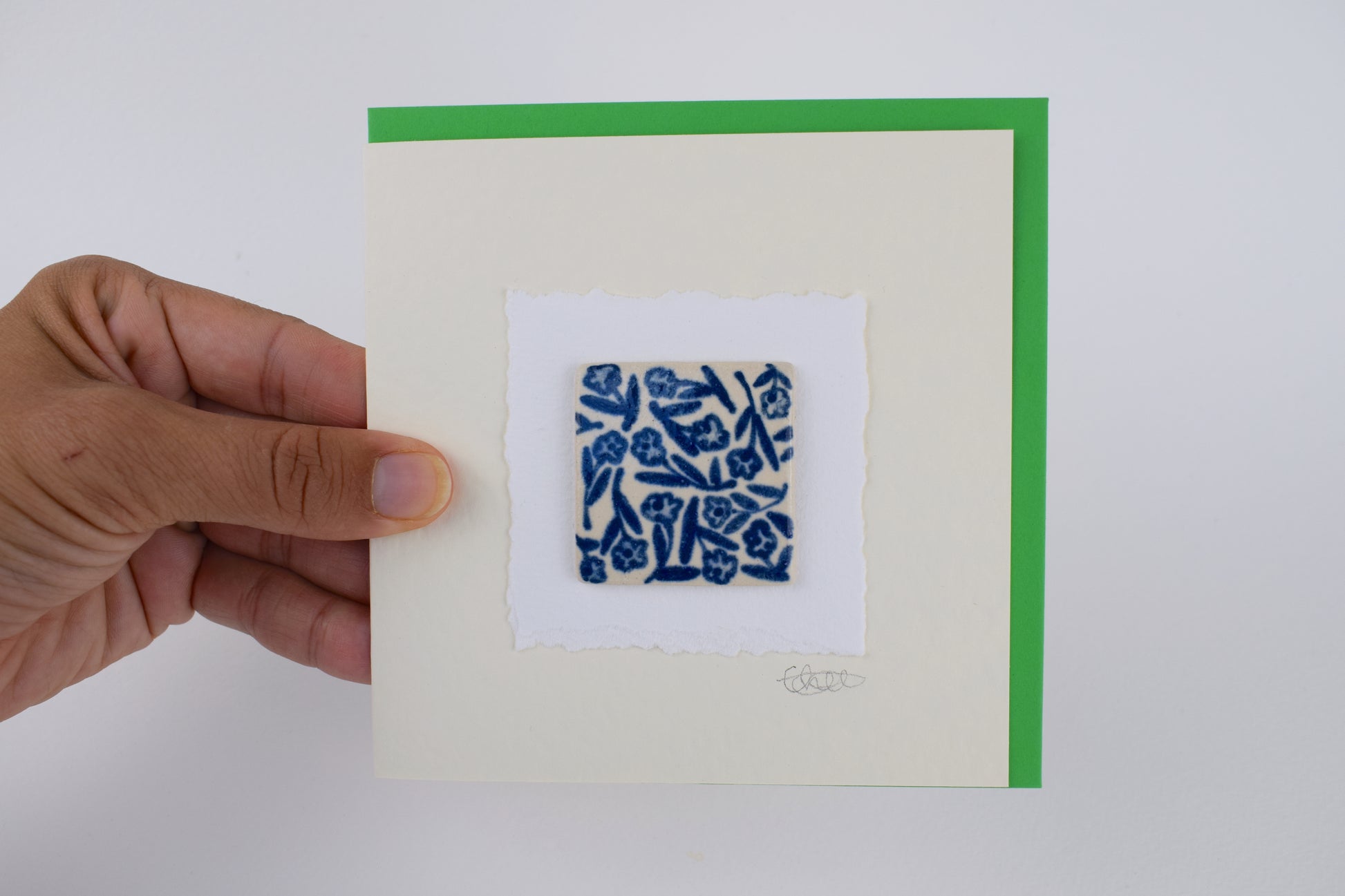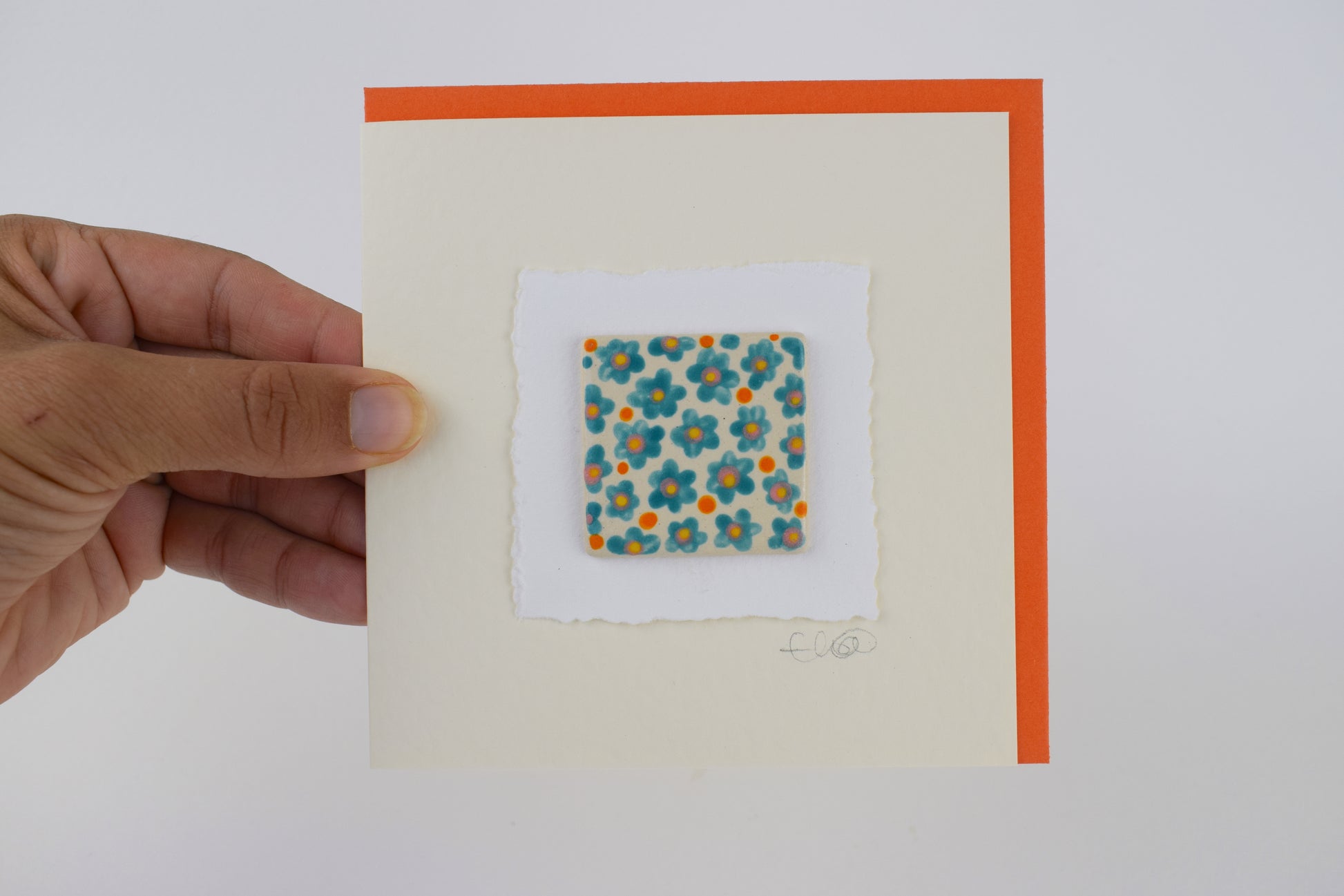The ceramic piece is then thoughtfully mounted on a luxurious 300gsm ivory hammered card, creating a beautiful contrast in texture and tone. Each card is hand-signed and stamped with the Emily Hett Art logo — a mark of its originality and heartfelt craftsmanship.