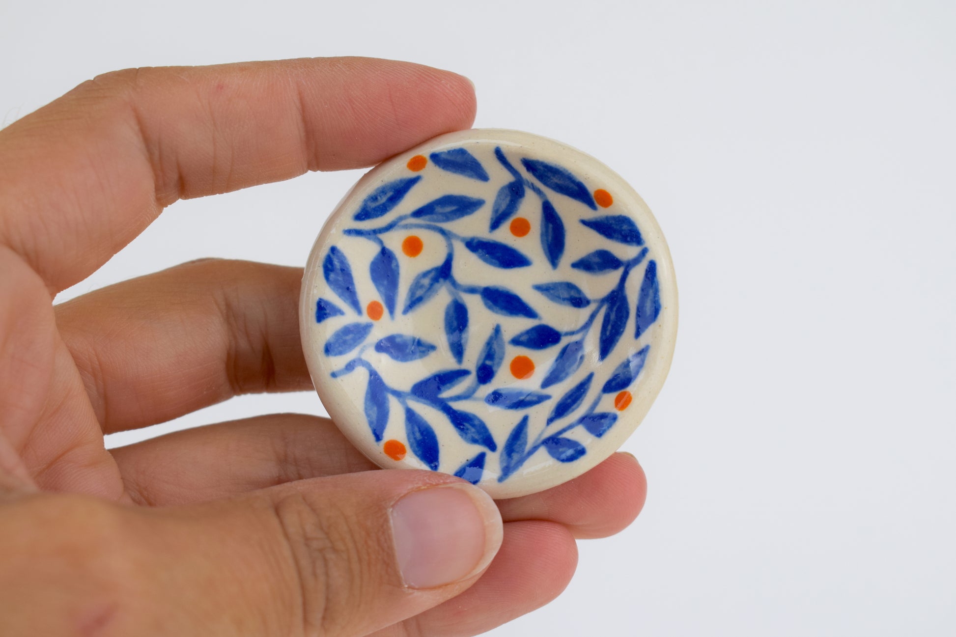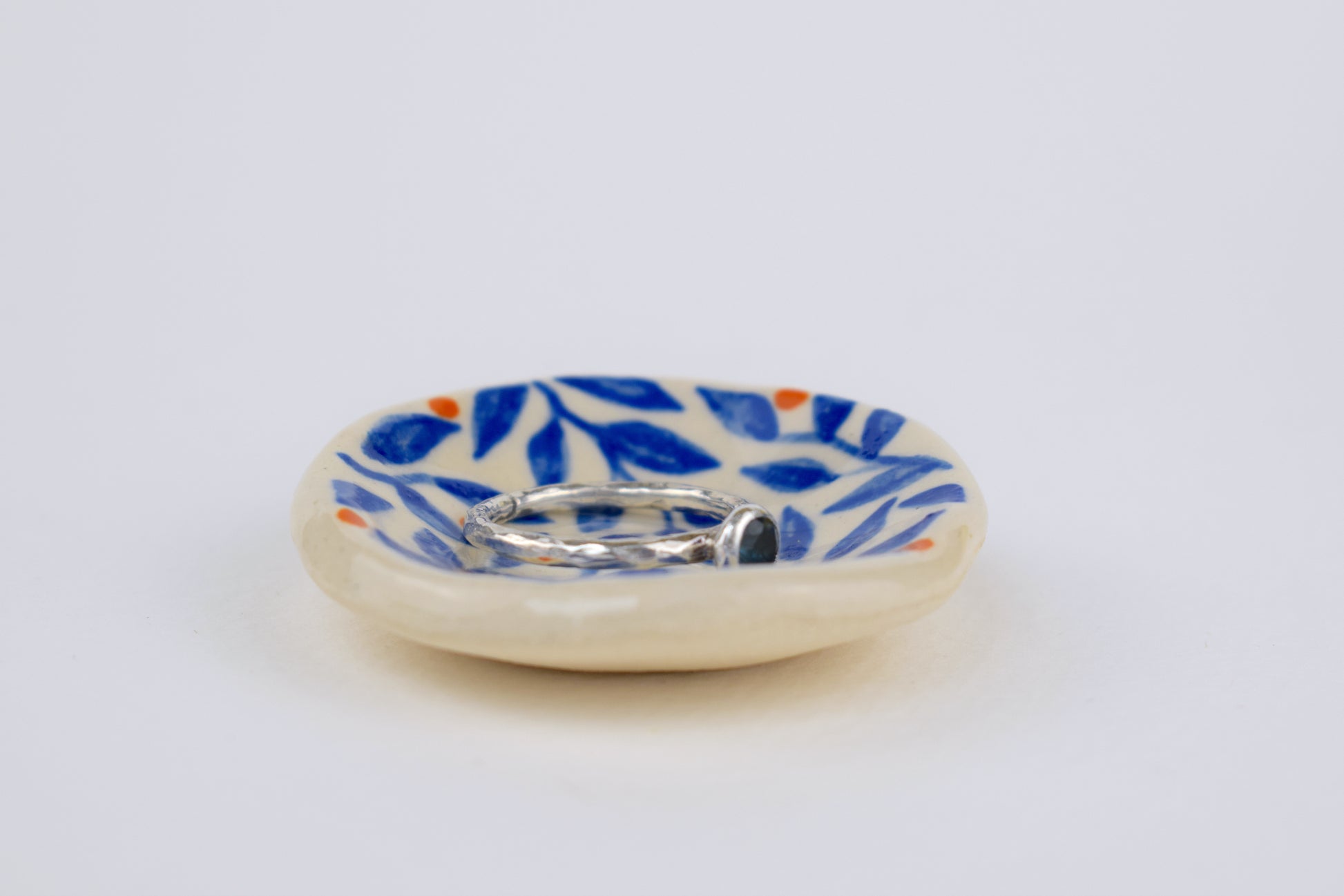 Each leaf is carefully painted, creating a soothing, painterly effect that adds a touch of nature-inspired charm to your space. Perfect for holding rings, earrings, or small treasures, this dish brings a quiet splash of colour to any shelf, dresser, or bedside table.