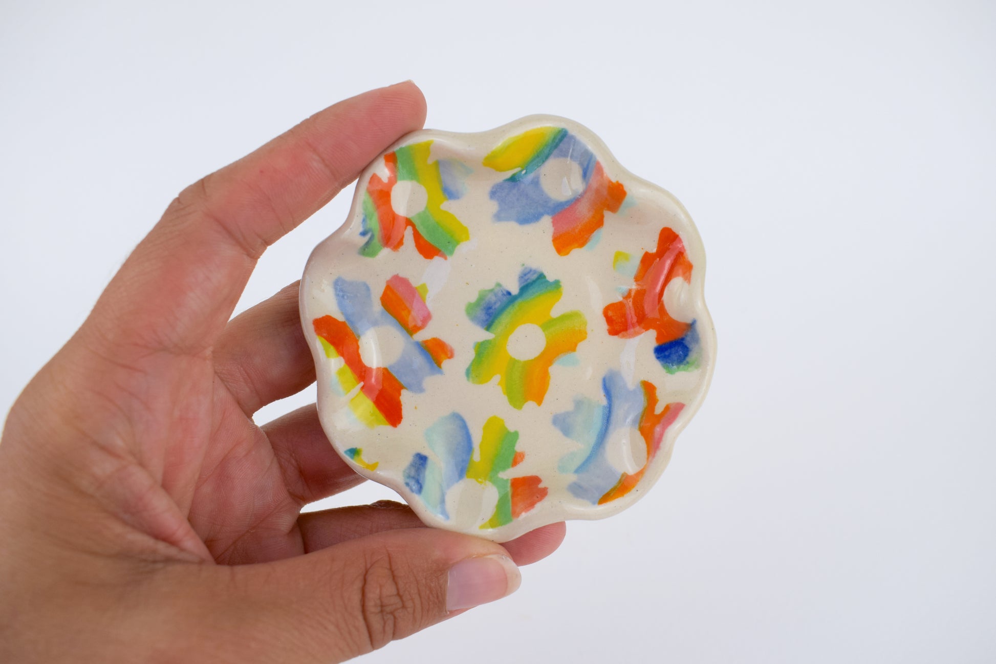 Each little bloom bursts with colour, like a mini wildflower meadow caught in ceramic — perfect for catching rings, earrings, or adding a touch of handmade joy to any corner of your home.