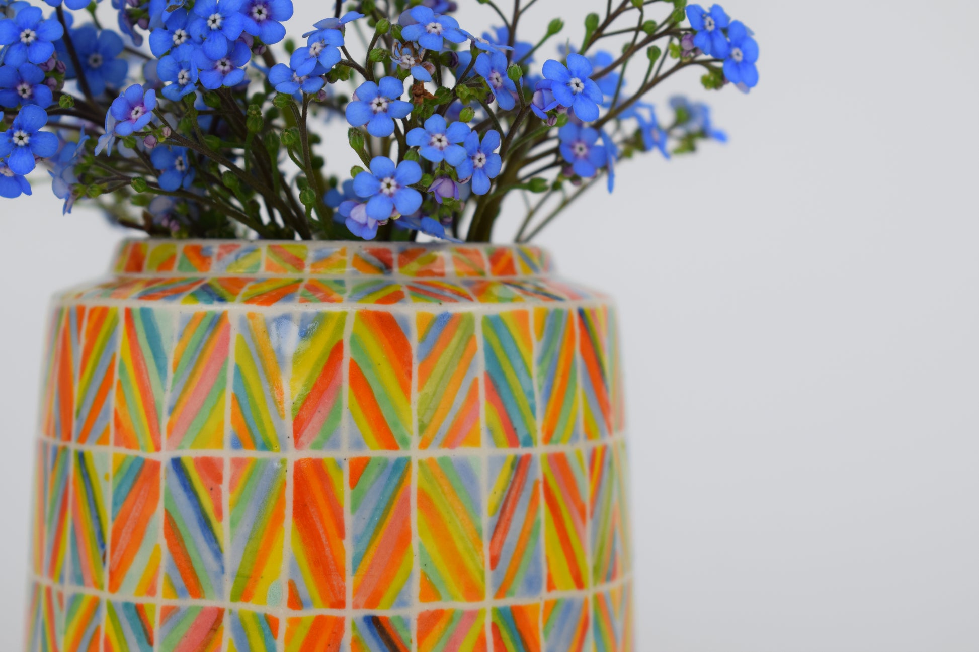 Each item is carefully packaged using recyclable materials wherever possible. Your vase will arrive wrapped in bright, happy colours and nestled securely in a sturdy box with compostable packers — ready to gift or enjoy.