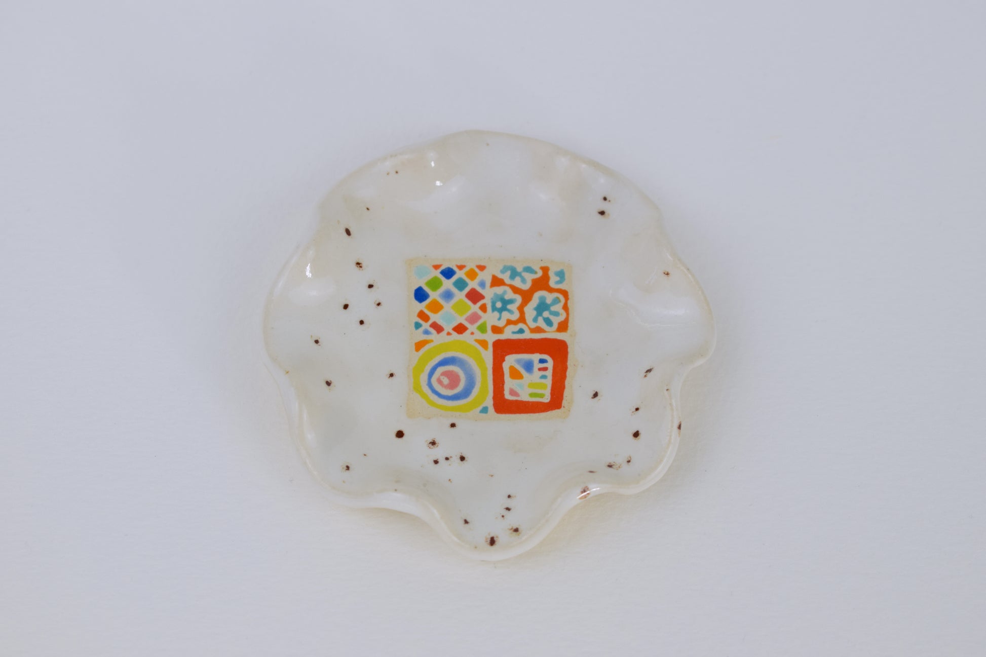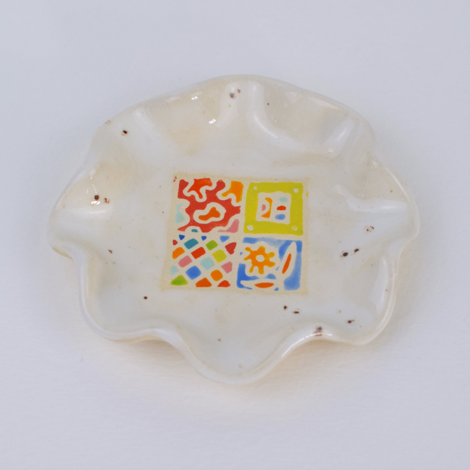 The Ceramic Dish is a joyful, hand-formed ceramic made in my cosy home studio. Shaped with a soft, ruffled edge and fired twice to over 1200°C, this one-of-a-kind piece is decorated with tiny hand-painted flowers in a rainbow of glazes.