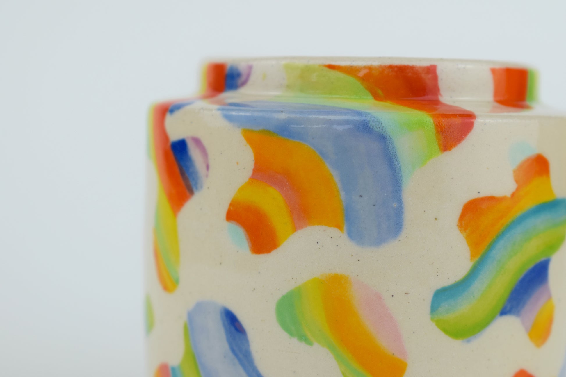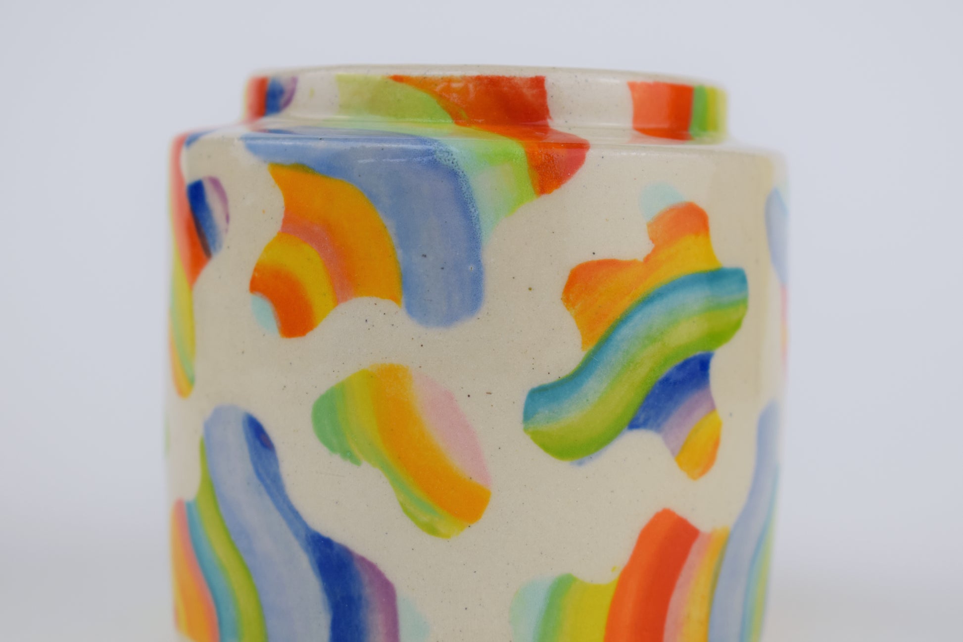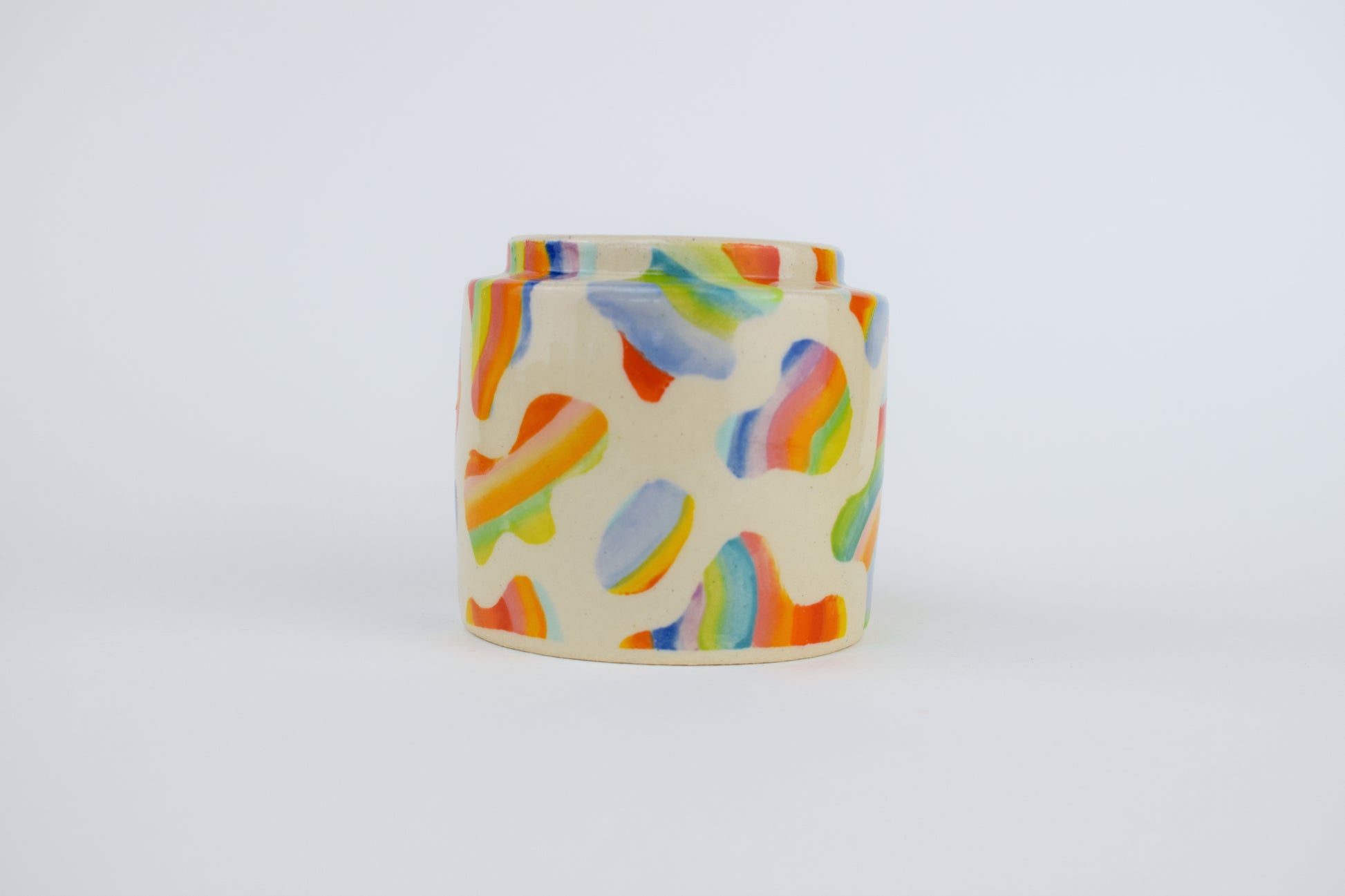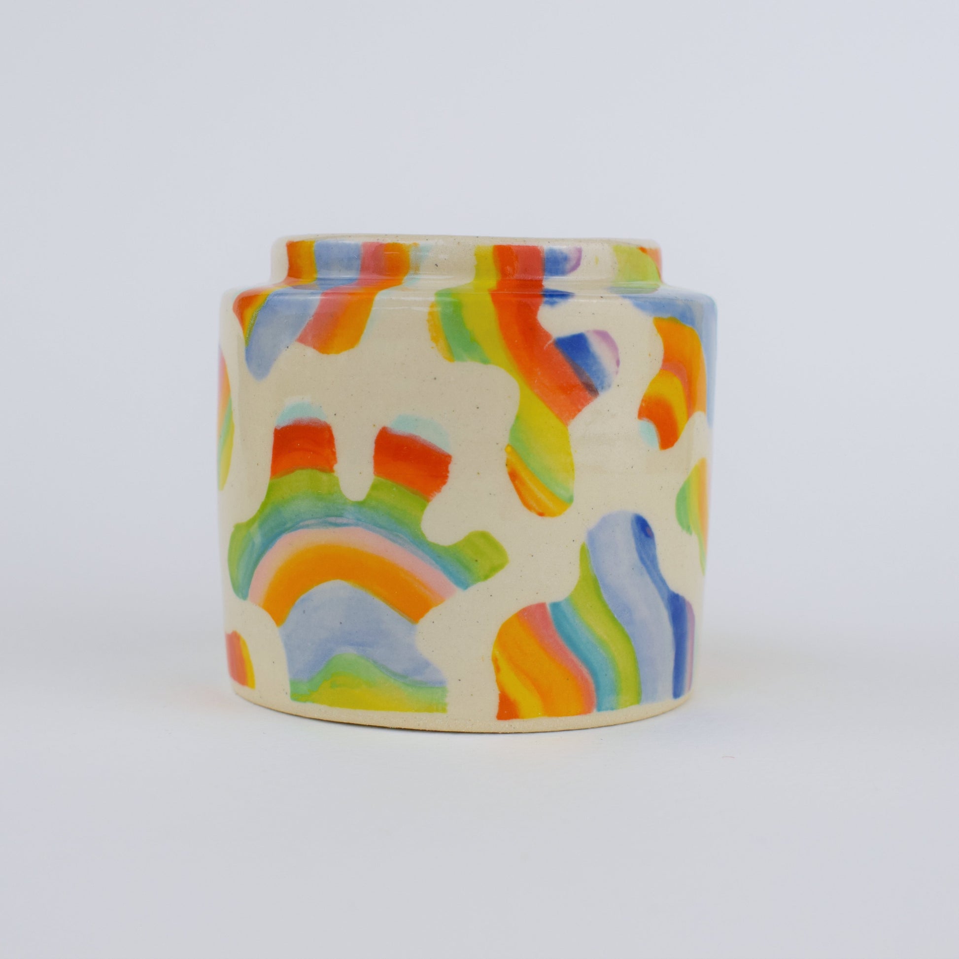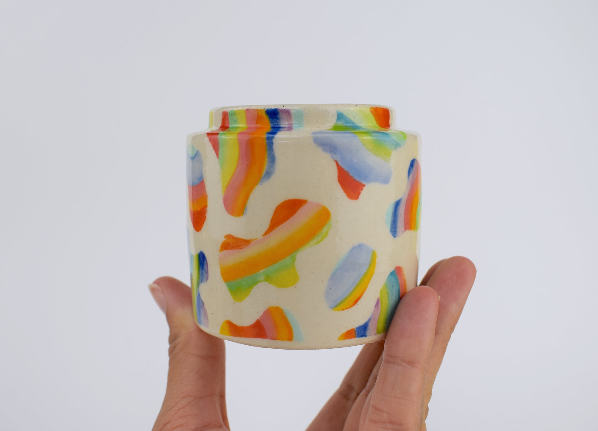 The Blobby Bloom Mini Vase is a vibrant, hand-thrown stoneware ceramic made in my cosy home studio. Fired to over 1200°C, each piece is completely unique, featuring a scatter of hand-painted blobs in a mix of bold, joyful glazes — colourful brushstrokes dancing across the surface.