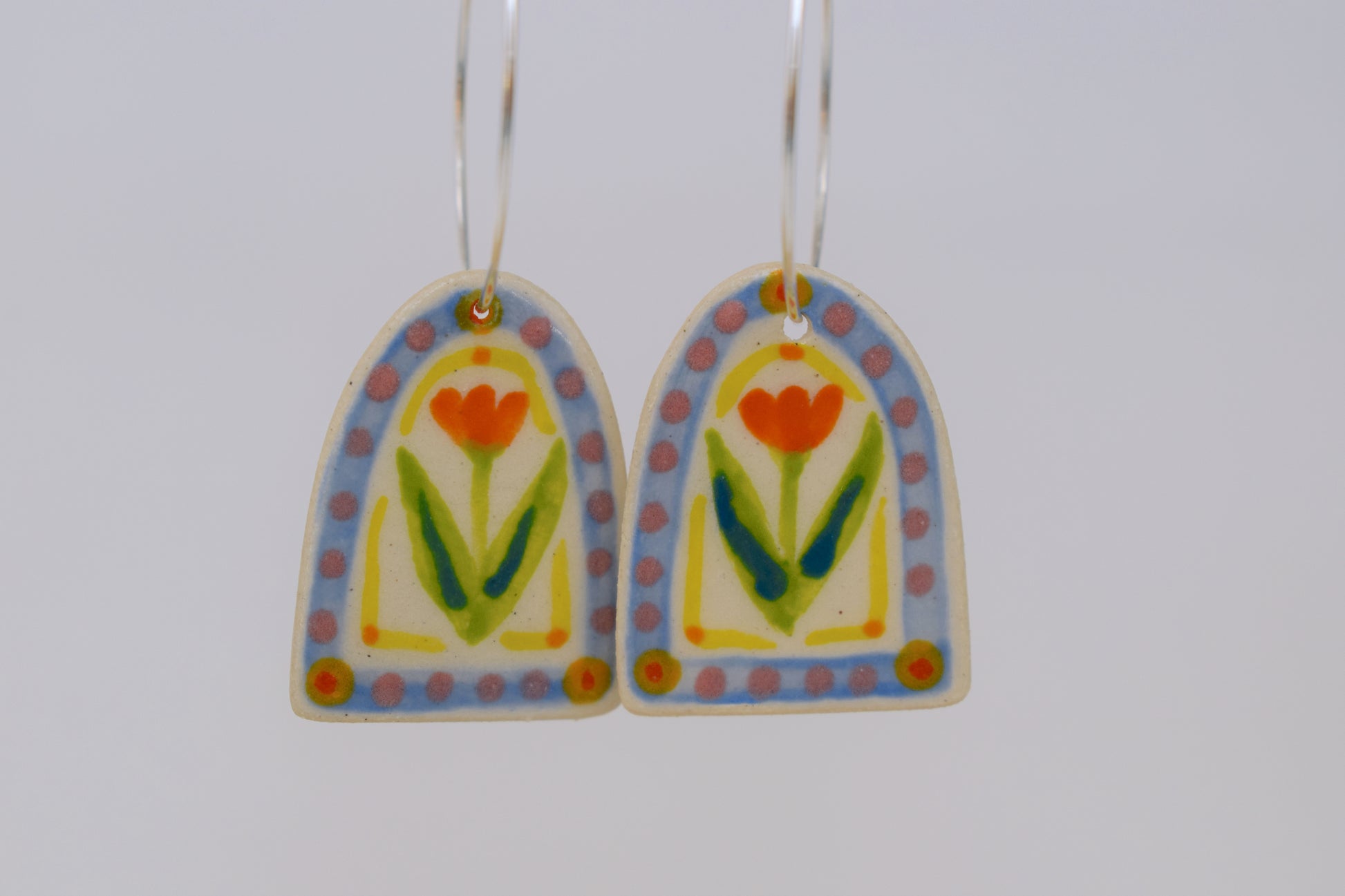 Experience everyday joy with these Emily Hett Art earrings—handmade and hand-painted to bring a burst of colour and personality to your style. Each pair is a miniature work of art, crafted with care and attention to detail. Lightweight and comfortable, they feature sterling silver hardware, making them perfect for sensitive ears. Whether you’re dressing up or brightening a casual look, these earrings add a cheerful, artistic touch that’s uniquely yours.