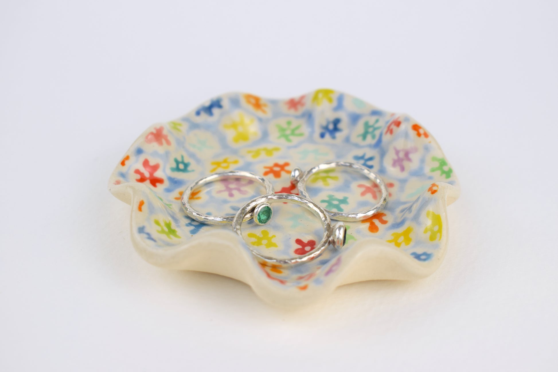 Each little bloom bursts with colour, like a mini wildflower meadow caught in ceramic — perfect for catching rings, earrings, or adding a touch of handmade joy to any corner of your home.