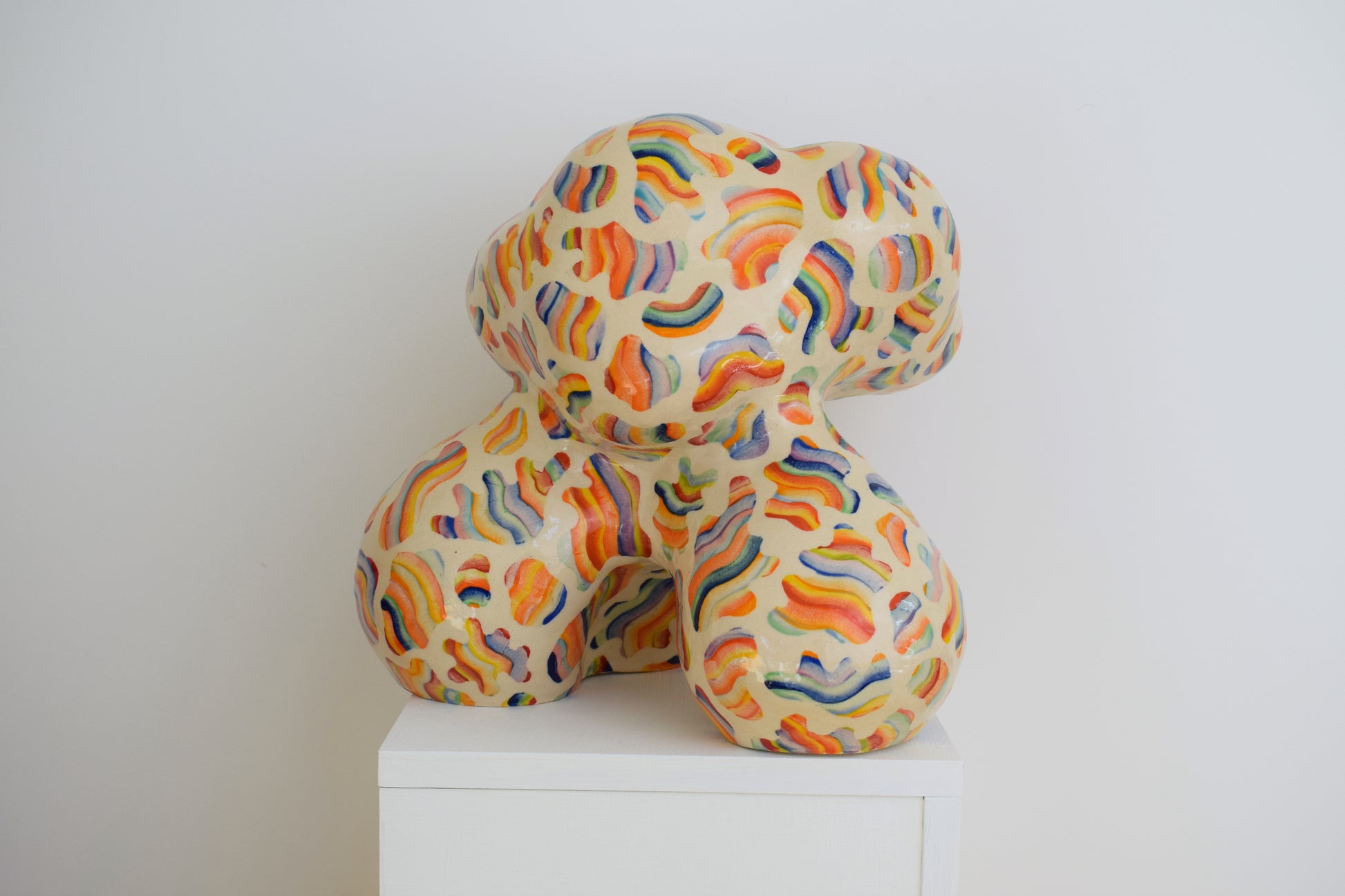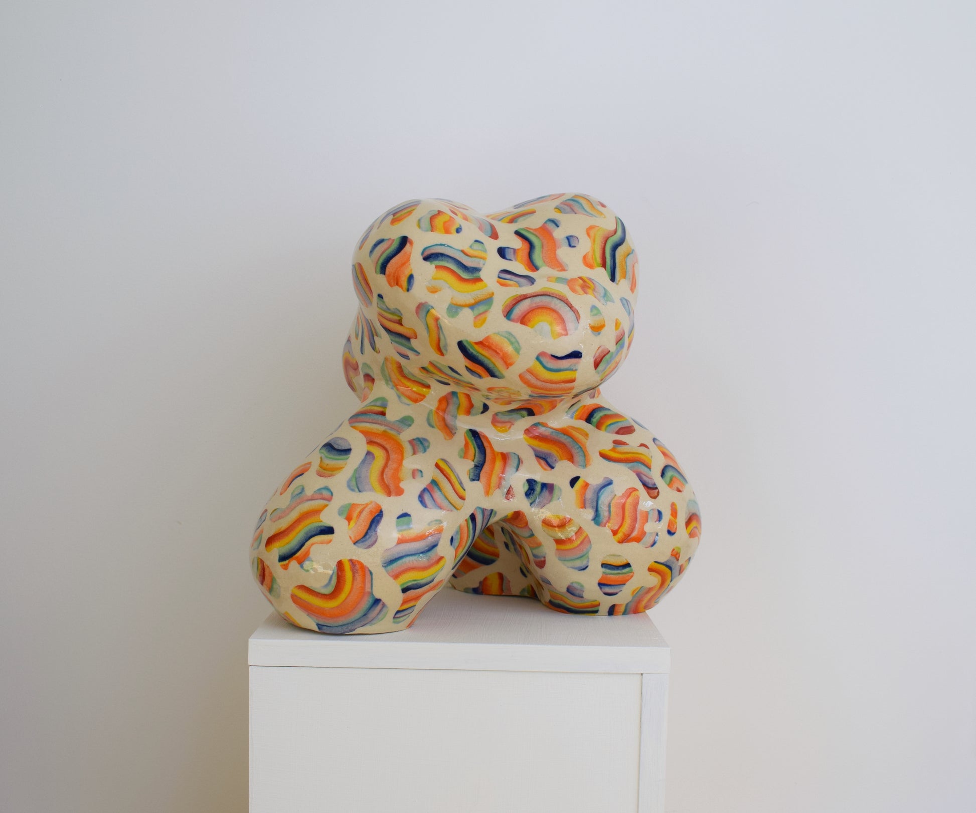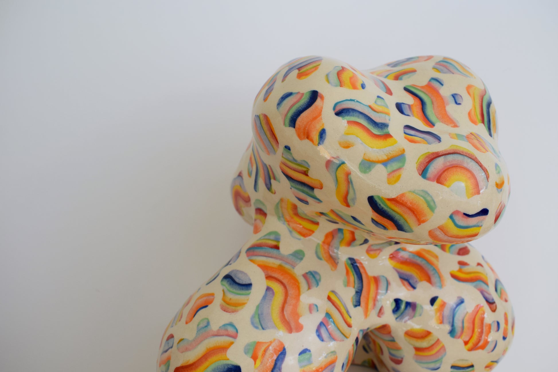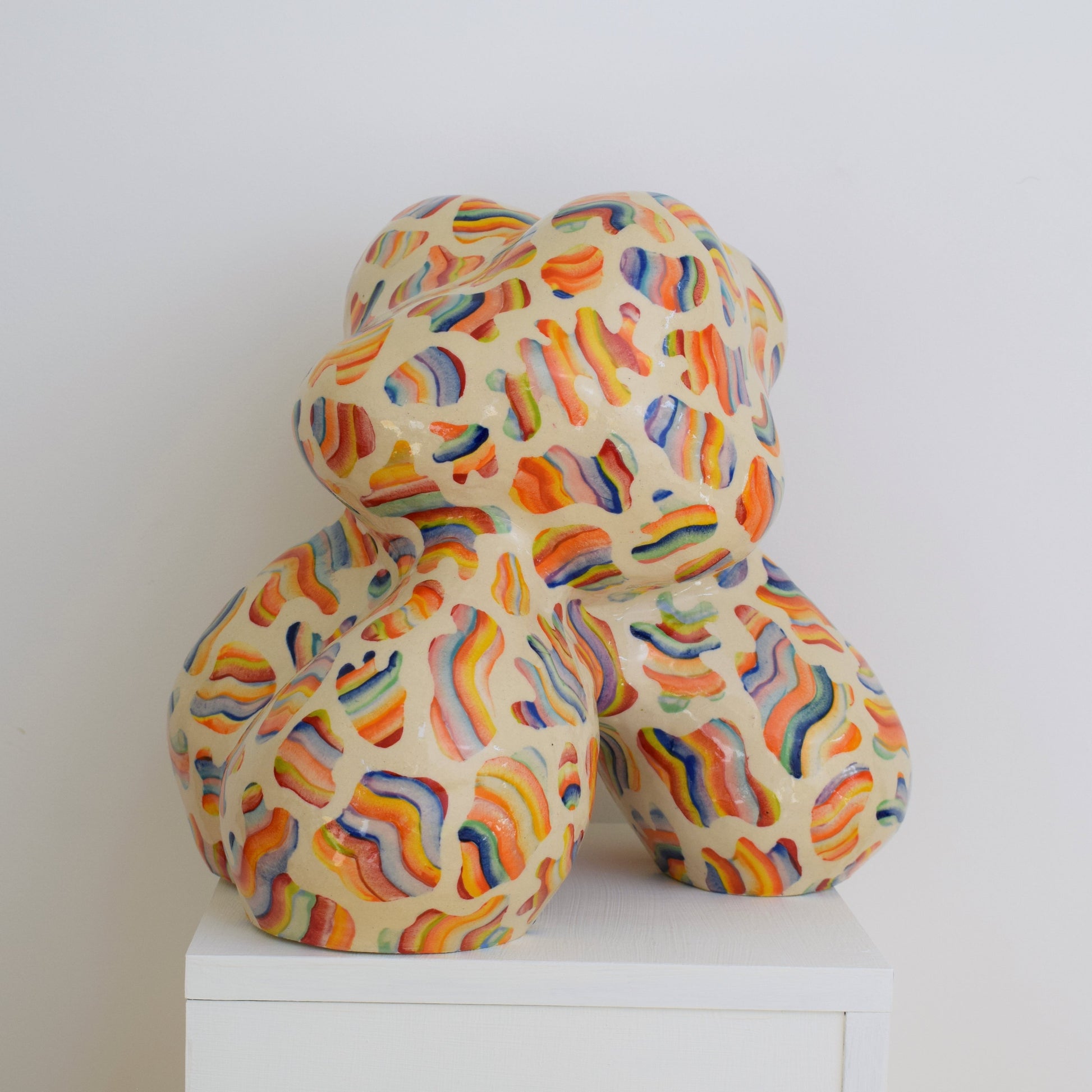 This sculpture has been hand built and painted with vibrant glazes using patterns inspired by nature.